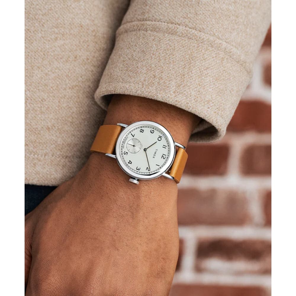With its careful attention to detail, the Timex Standard shines as one of our most refined everyday watches. This timepiece is designed with versatility in mind, bringing together classic elements with modern materials, including an easily interchangeable brown leather strap crafted from repurposed apple skin. The beautiful, vertically brushed pale gold-tone dial, traditional sub second, and legible Arabic indices bring both nautical and military-inspired flair to your favorite casual watch. ​