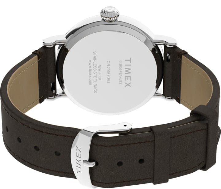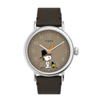 Give thanks for friends! Our most refined everyday watch meets our favorite Peanuts pup. We updated our versatile Timex Standard—pairing the silver-tone case and brown leather strap with our pals Snoopy and Woodstock dressed as pilgrims on the dial to celebrate Thanksgiving.