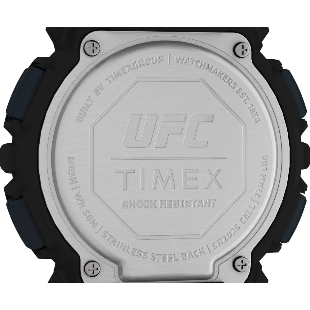 The TIMEX UFC Striker lays it all on the line with the core timing features you’d expect from a best-in-class digital watch. The iconic five-button design gives you direct access to a 100-hour chronograph, 24-hour countdown timer, military time, dual time zones, and daily alarms. It’s one of our lightweight editions, featuring a rugged black 50mm case design and black integrated strap for maximum comfort—even when you’re on the move. Always up for a challenge, our revolutionary INDIGLO® backlight technology teams up with a dependable 50m water resistance rating, equipping you to take your training to the next level and beyond.