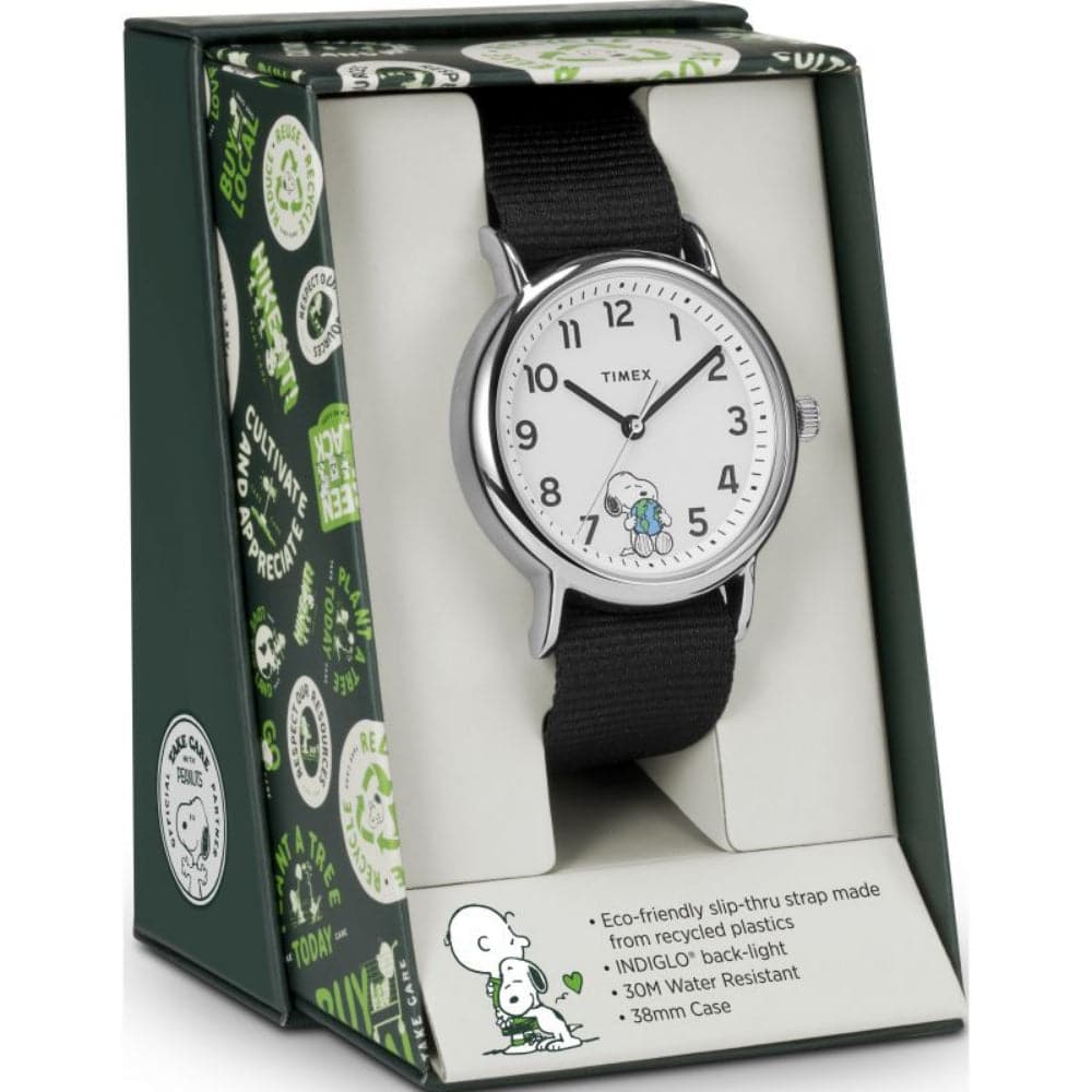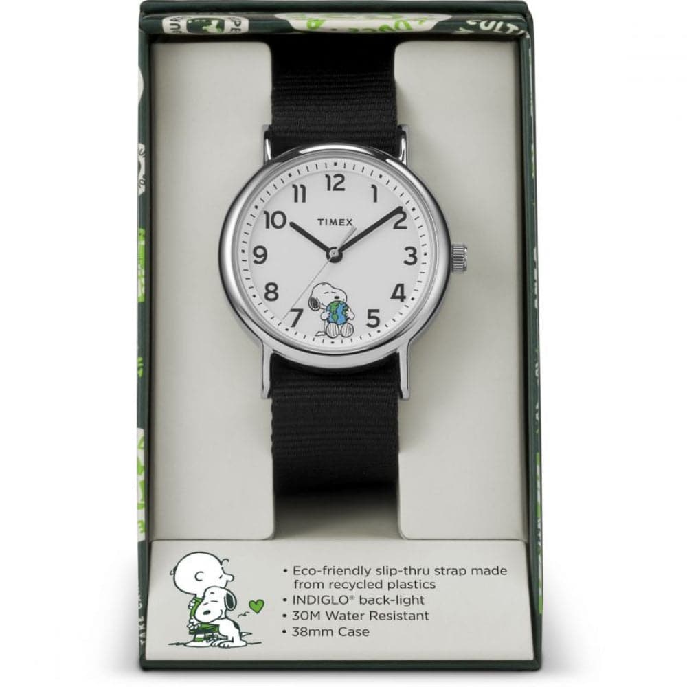 “In this house we recycle”, says Snoopy. We are taking care of the Earth along with our favorite gang and reminding everyone to keep it green and keep it clean. Introducing our Timex Weekender x Peanuts with an eco-friendly slip-thru strap made of recycled plastics and sustainable packaging. It also comes with an INDIGLO® backlight, 30M water resistance and Snoopy featured on the dial, reminding you to Take Care by showing yourself and the planet some love.