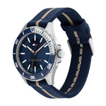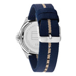 This Tommy Hilfiger watch has a case made of stainless steel with a diameter of 43 mm and is fitted with a textile band. Inside the case lies a Miyota movement and the watch features a Mineral crystal.