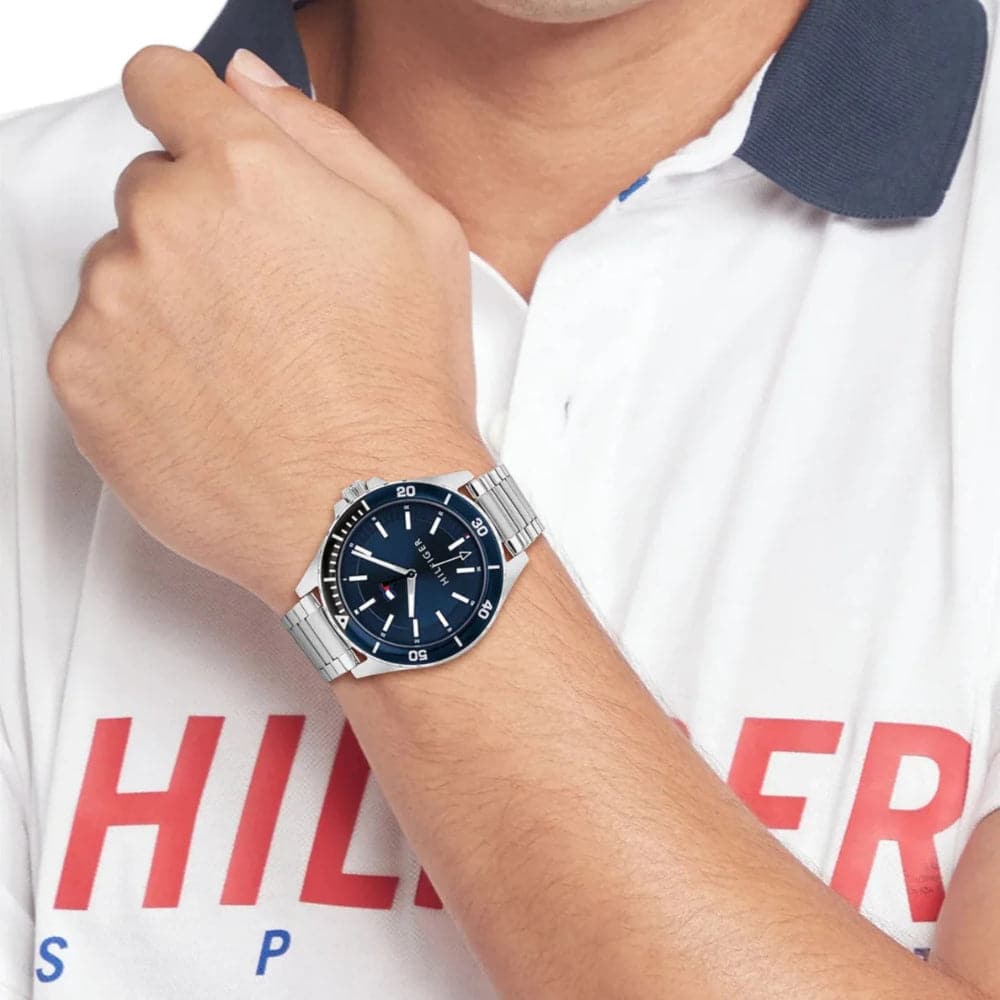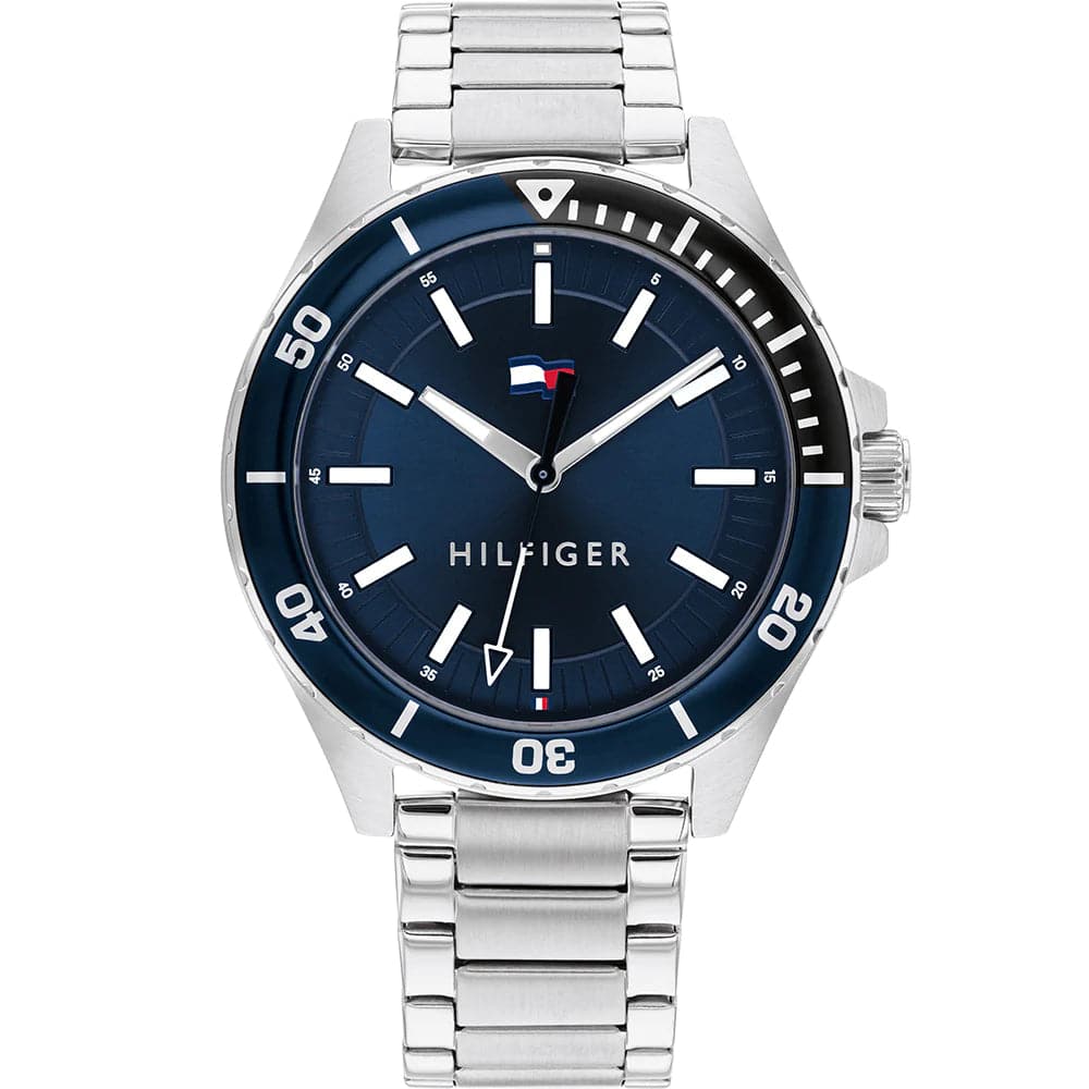 This Tommy Hilfiger watch has a case made of stainless steel with a diameter of 43 mm and is fitted with a metal band. Inside the case lies a Miyota movement and the watch features a Mineral crystal.