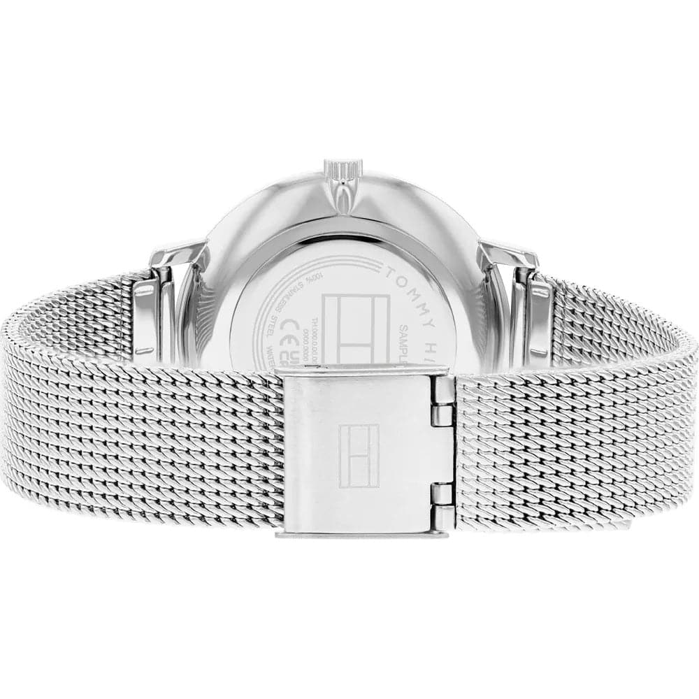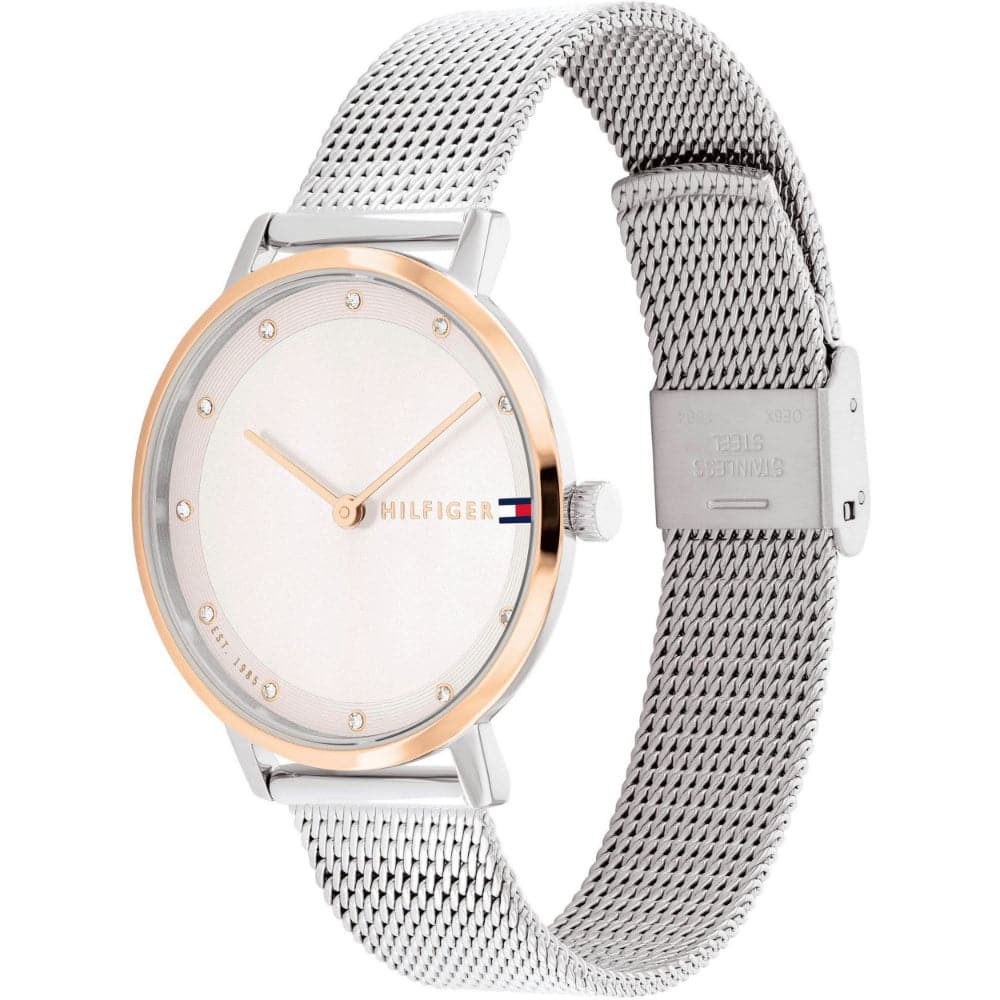 This Tommy Hilfiger watch has a case made of stainless steel with a diameter of 34 mm and is fitted with a metal band. Inside the case lies a Seiko Instruments Inc. movement and the watch features a Mineral crystal.