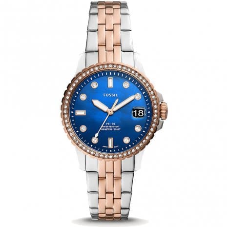 FOSSIL ES4996 CRYSTAL BLUE DIAL TWO-TONE STAINLESS STEEL BRACELET WOMEN'S WATCH