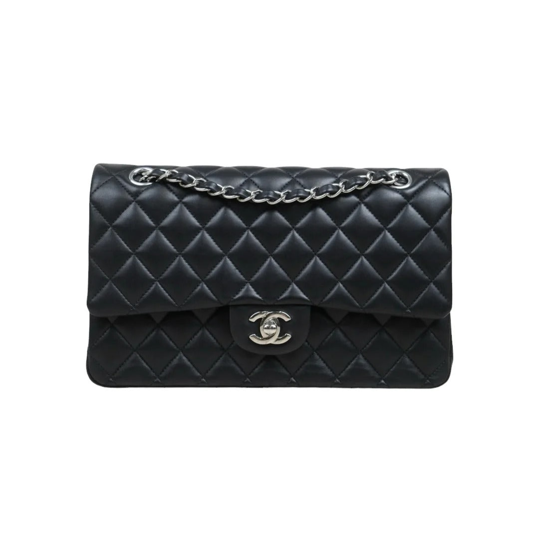 Chanel Lamb Skin Matrasse Double Flap 25 Shoulder Bag Black Made In 2017 S25101808 (Very Good Condition)