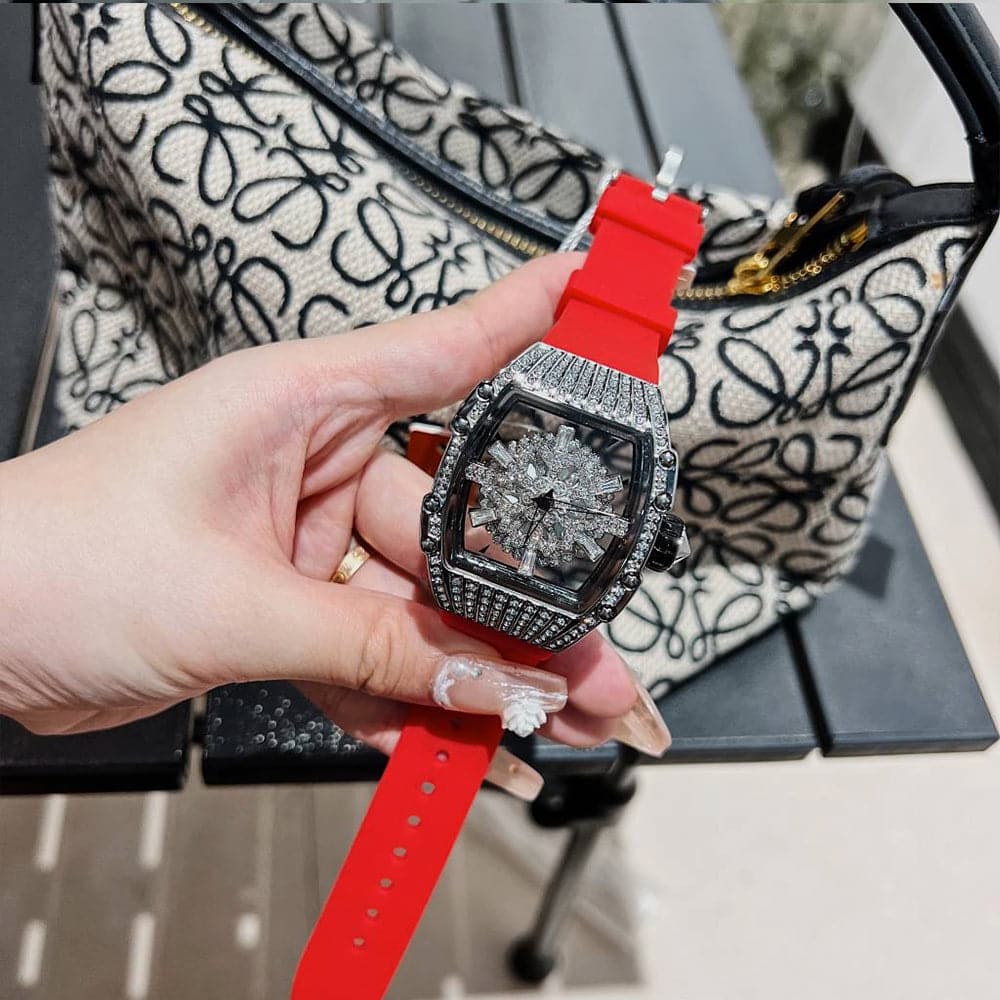 Aries Gold Crystal Dial Red Silicone Strap Women Watch L 5044 SW-R