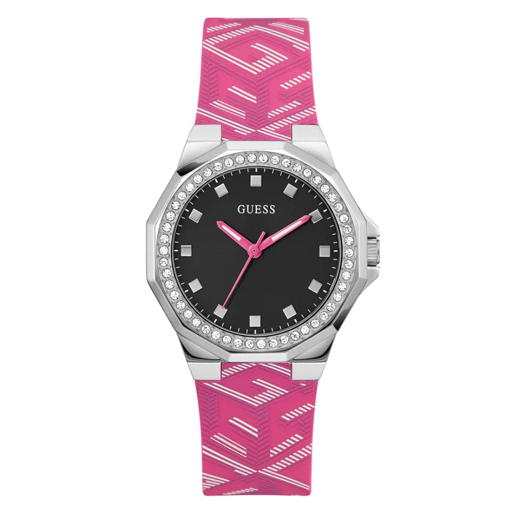 Guess Analog Black Dial Pink Silicone Strap Women Watch GW0598L1
