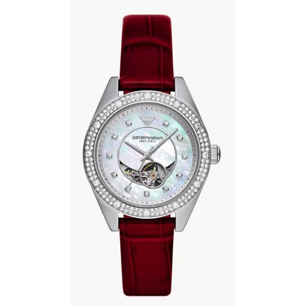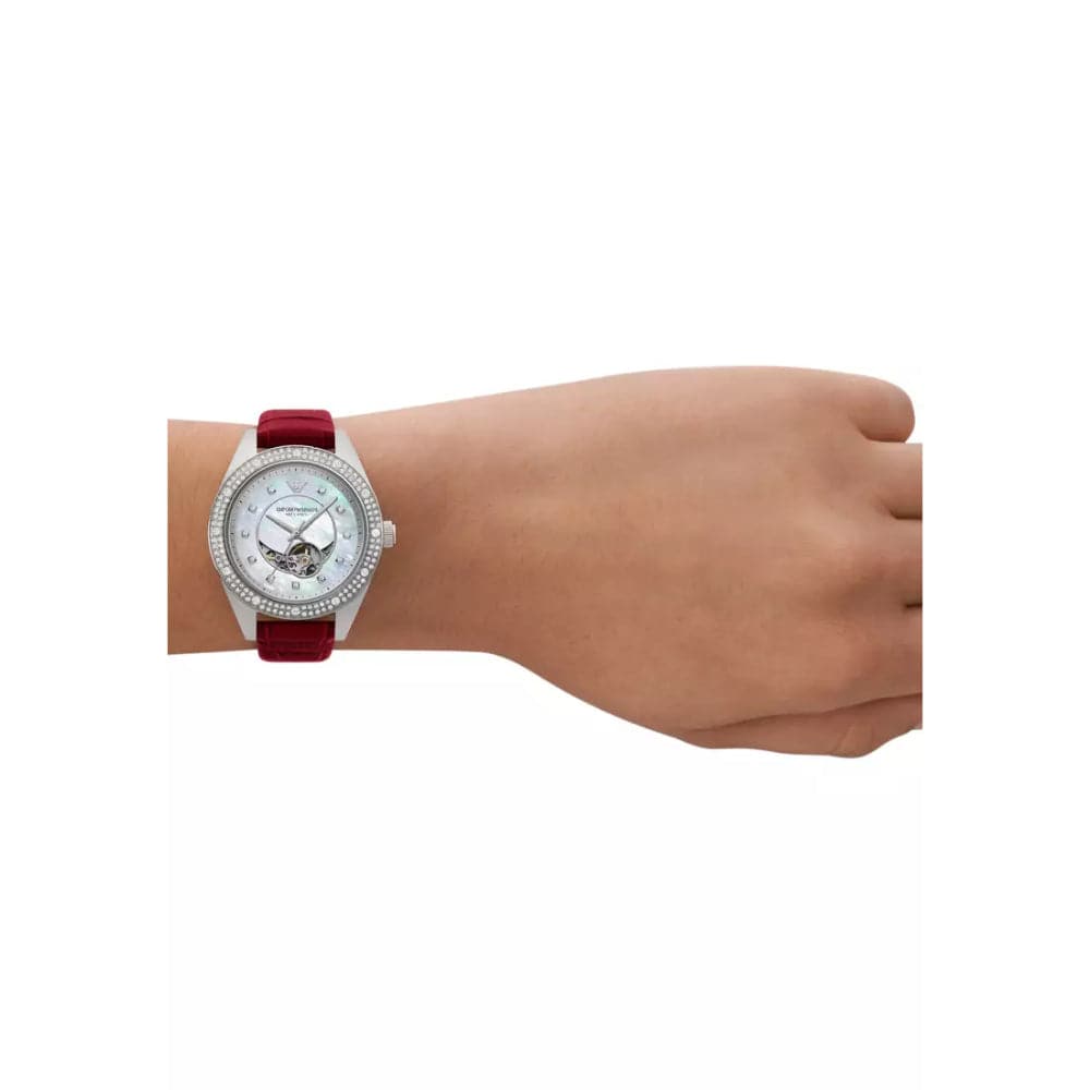 Emporio Armani Silver Dial Red Leather Strap Women Watch AR60075