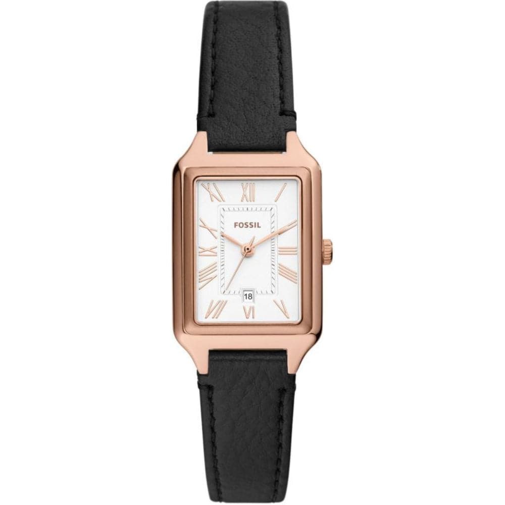 Fossil Raquel White Dial Black Leather Strap Women Watch ES5310