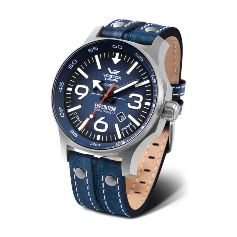 Vostok Europe Expedition Blue Dial Leather Strap Men Watch YN55-595A638-L