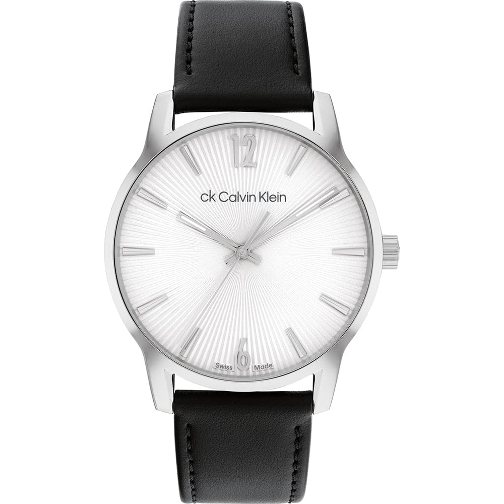 Calvin Klein White Dial Black Leather Strap Men Watch 25000054