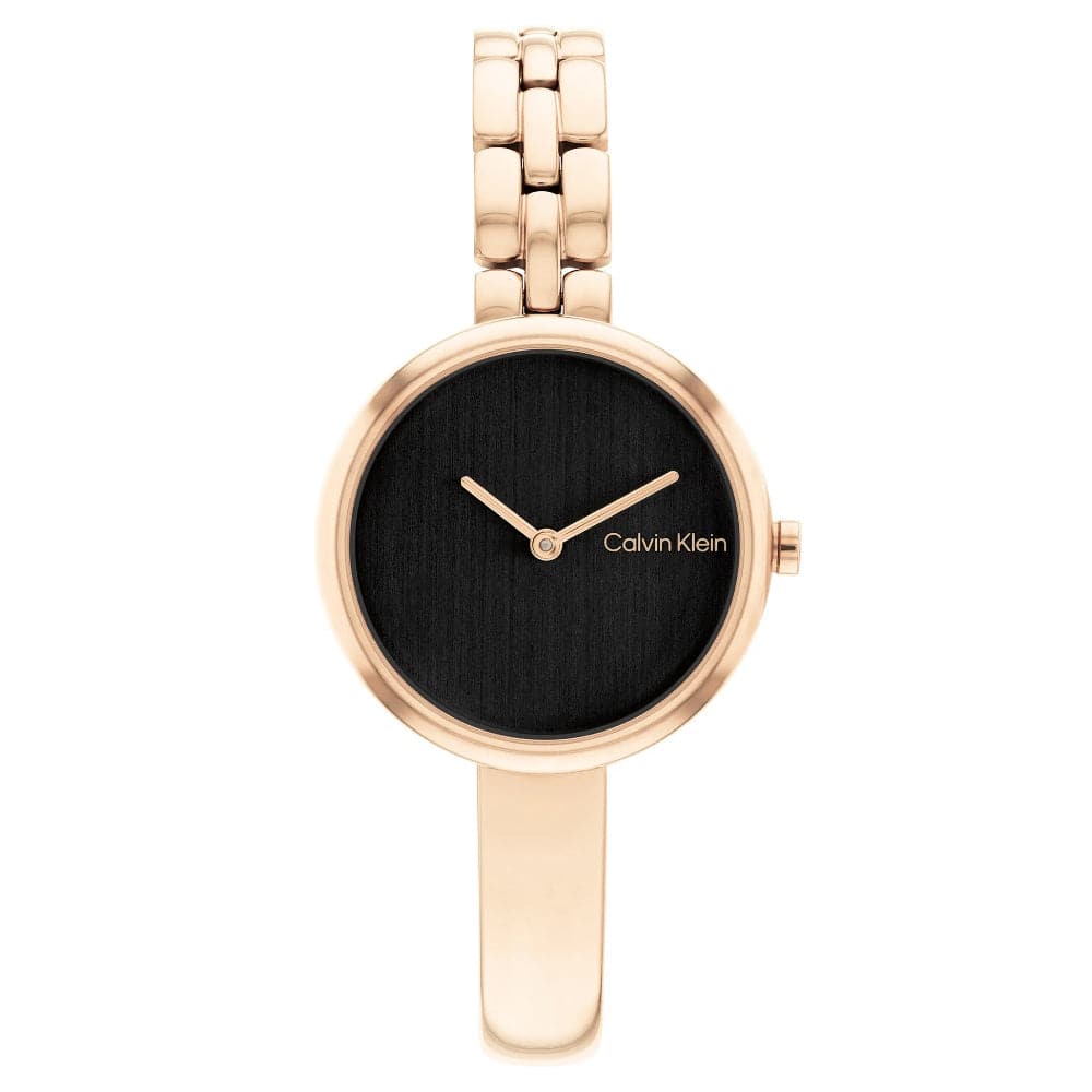 Calvin Klein Bangled Black Dial Rose Gold Stainless Steel Strap Women Watch 25200280