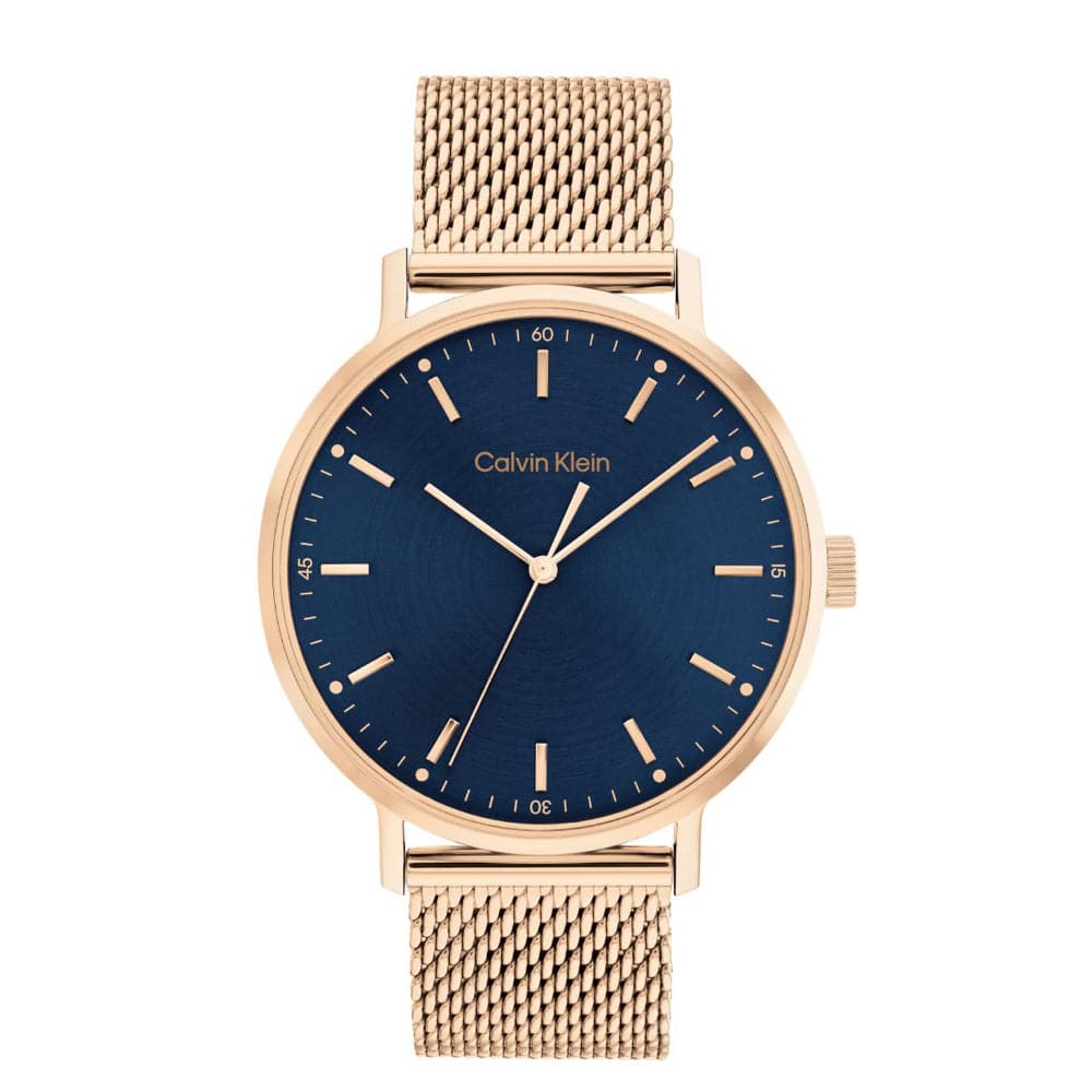 Calvin Klein Blue Dial Rose Gold Milanese Strap Men Watch 25200314