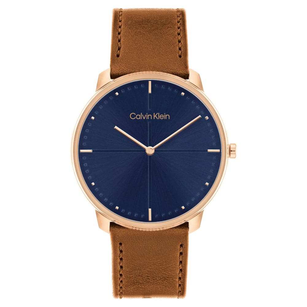 Calvin Klein Blue Dial Brown Leather Strap Men Watch 25200154