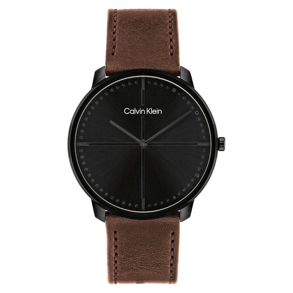 Calvin Klein Black Dial Brown Leather Strap Men Watch 25200155