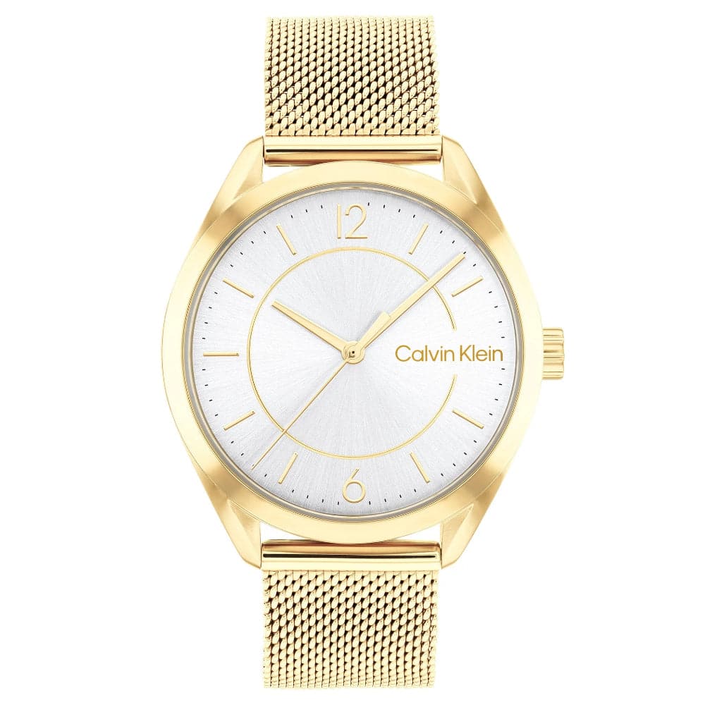 Calvin Klein White Dial Gold Milanese Strap Women Watch 25200195