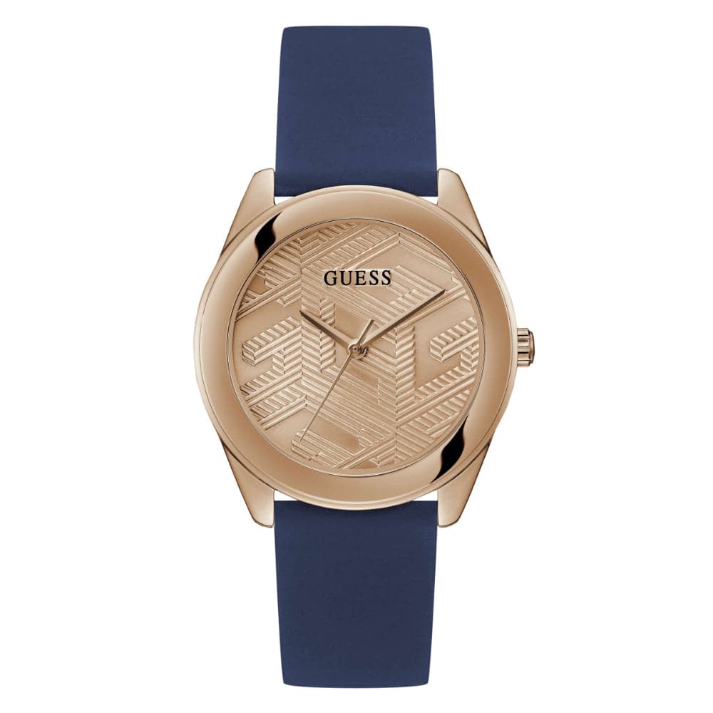 Guess Analog Rose Gold Dial Blue Rubber Strap Women Watch GW0665L2
