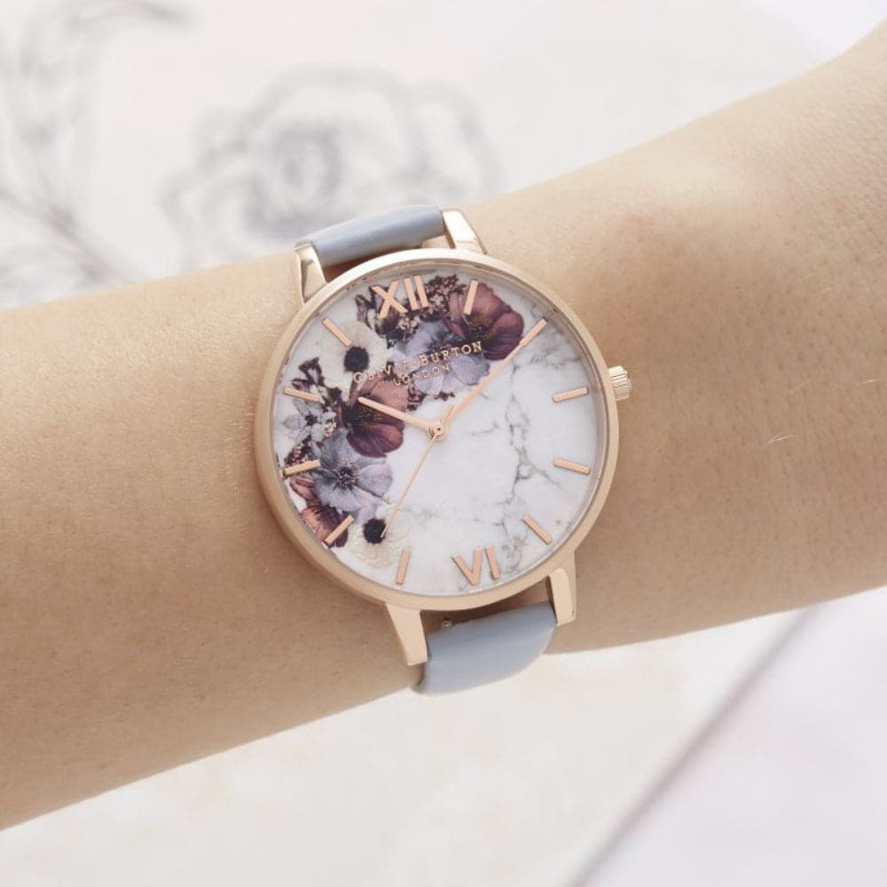 Olivia Burton Marble Florals Blue Leather Strap Women Watch OB16MF10