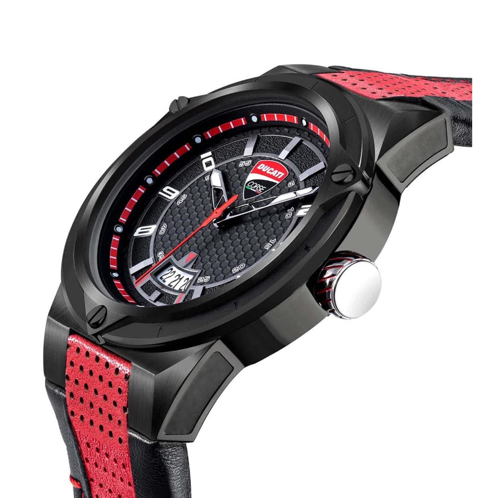 Ducati Corse Black Dial Red Leather Strap Men Watch DTWGB2019701