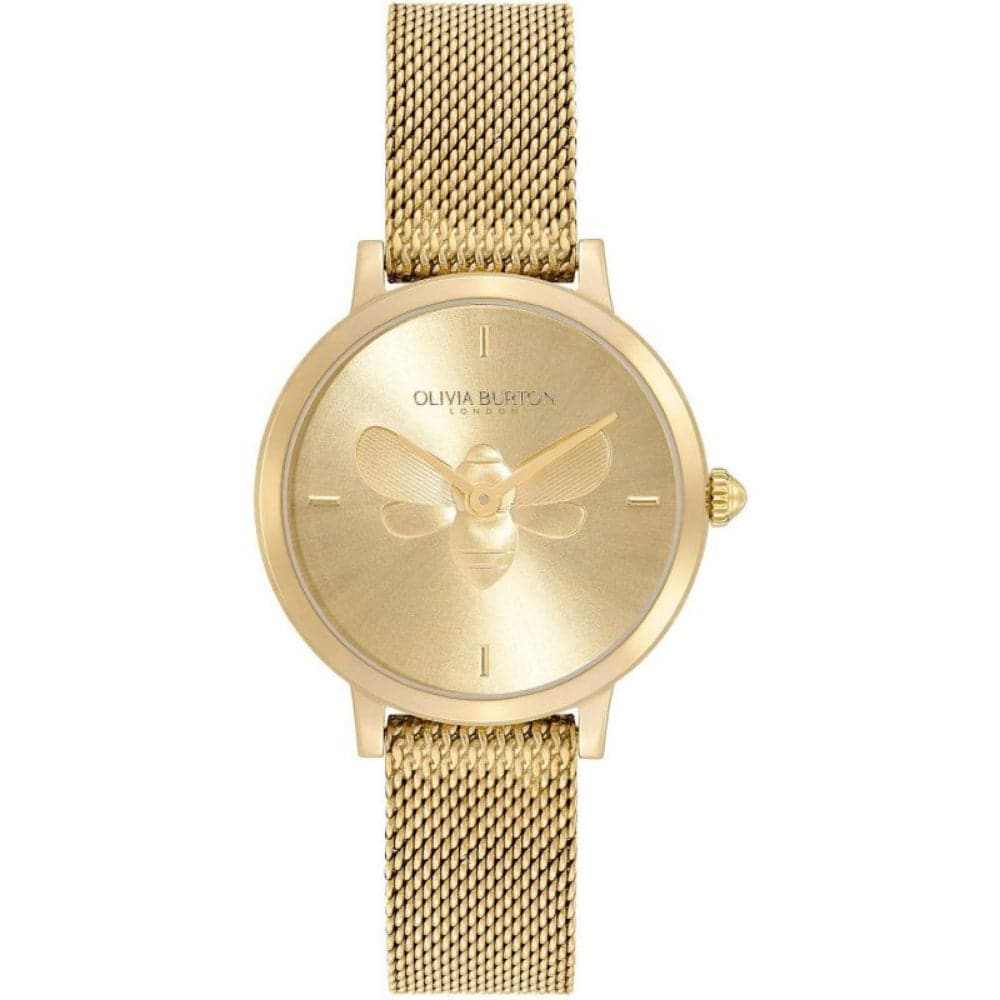 Olivia Burton Ultra Slim Bees Gold Dial Milanese Strap Women Watch 24000022