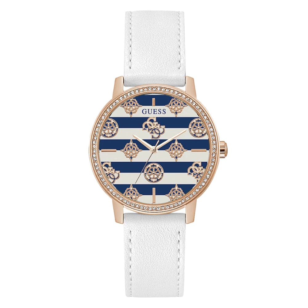 Guess White Leather Recycled Ultra Suede Strap Women Watch GW0398L2