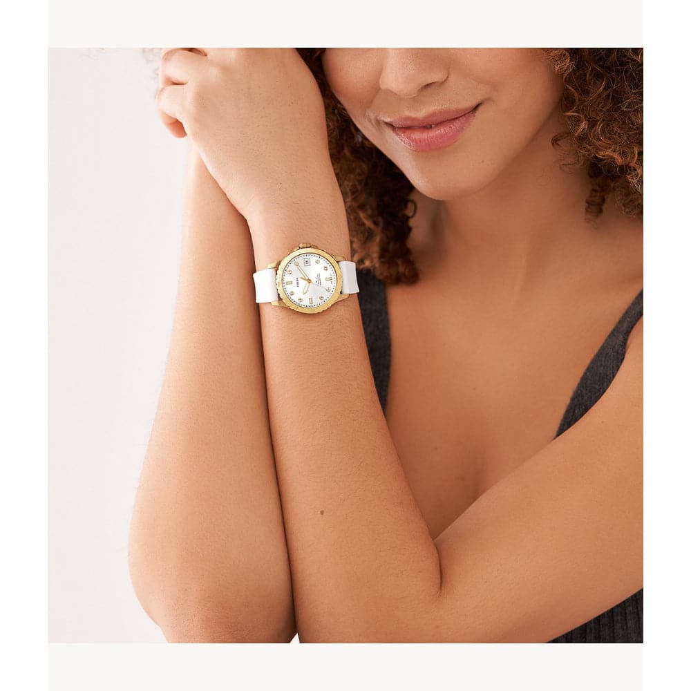 Fossil FB-01 White Dial & Silicone Strap Women Watch ES5286