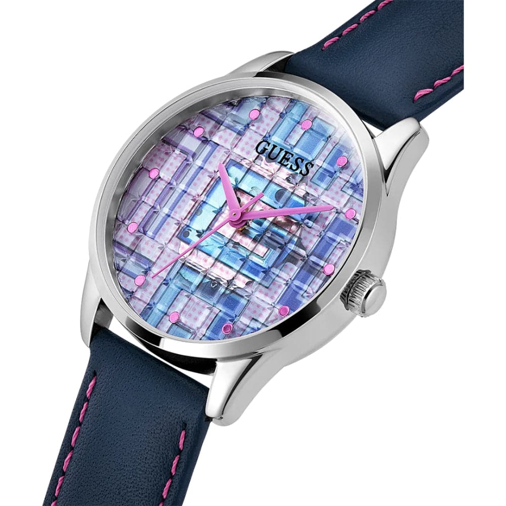 Guess Silver Case Navy Genuine Leather Women Watch GW0480L1