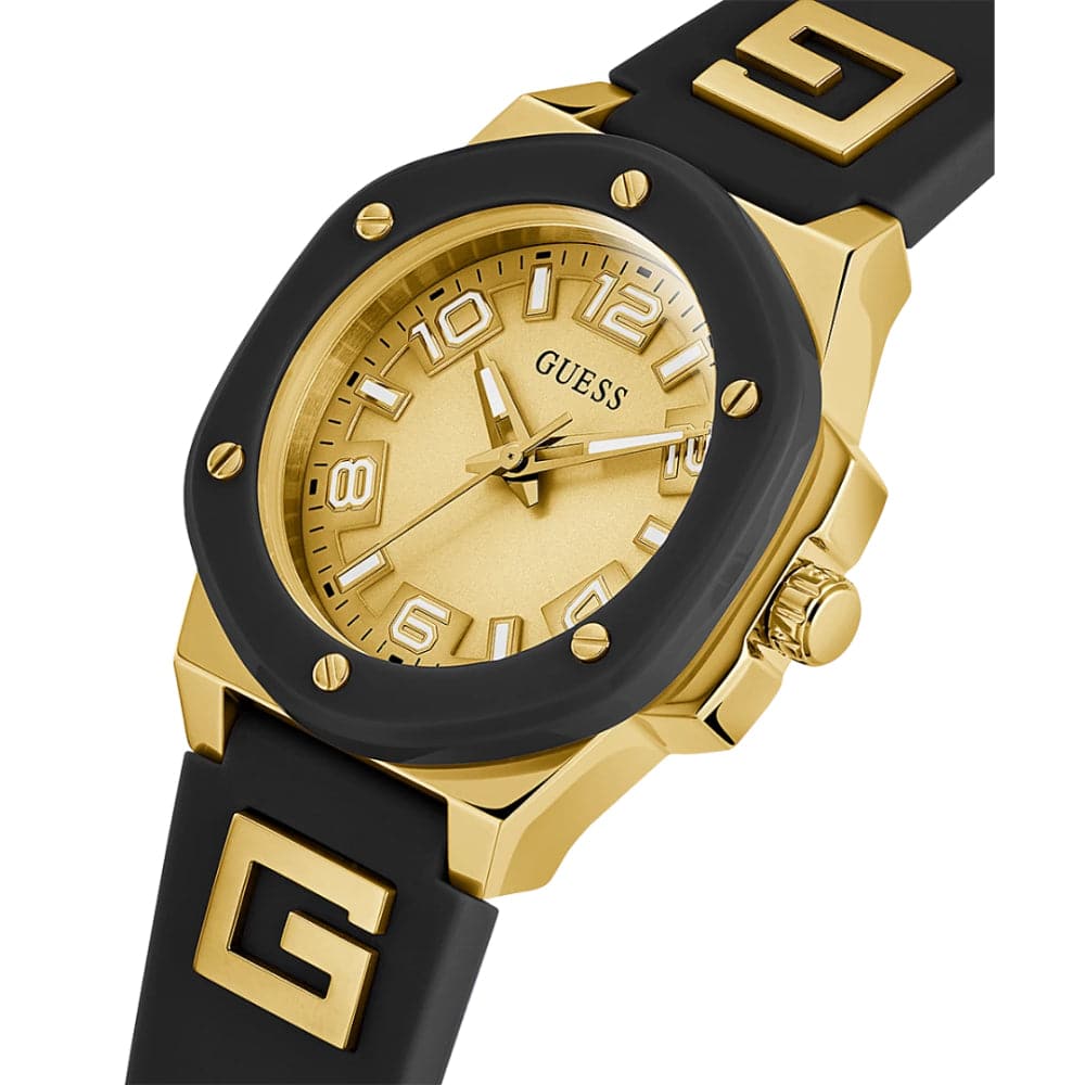 Guess Analog Gold Dial Black Silicone Strap Women Watch GW0555L2