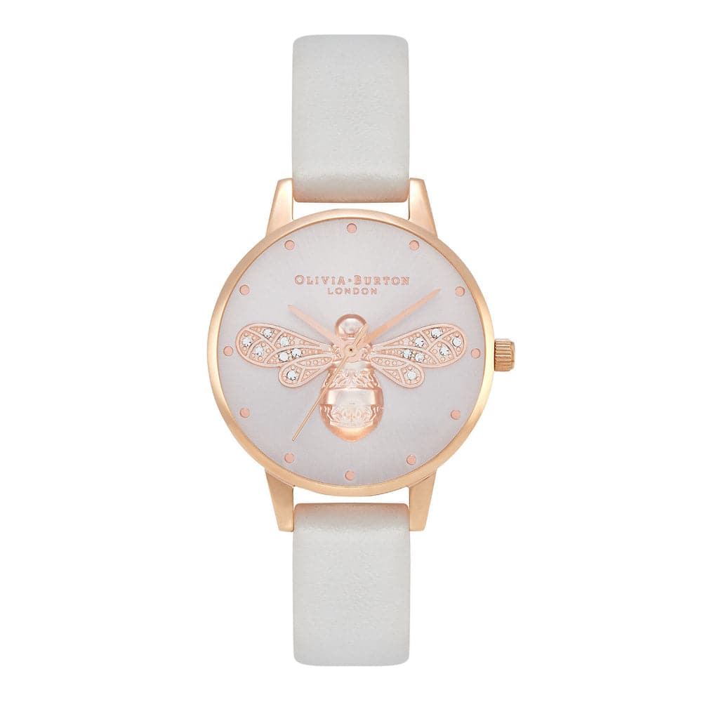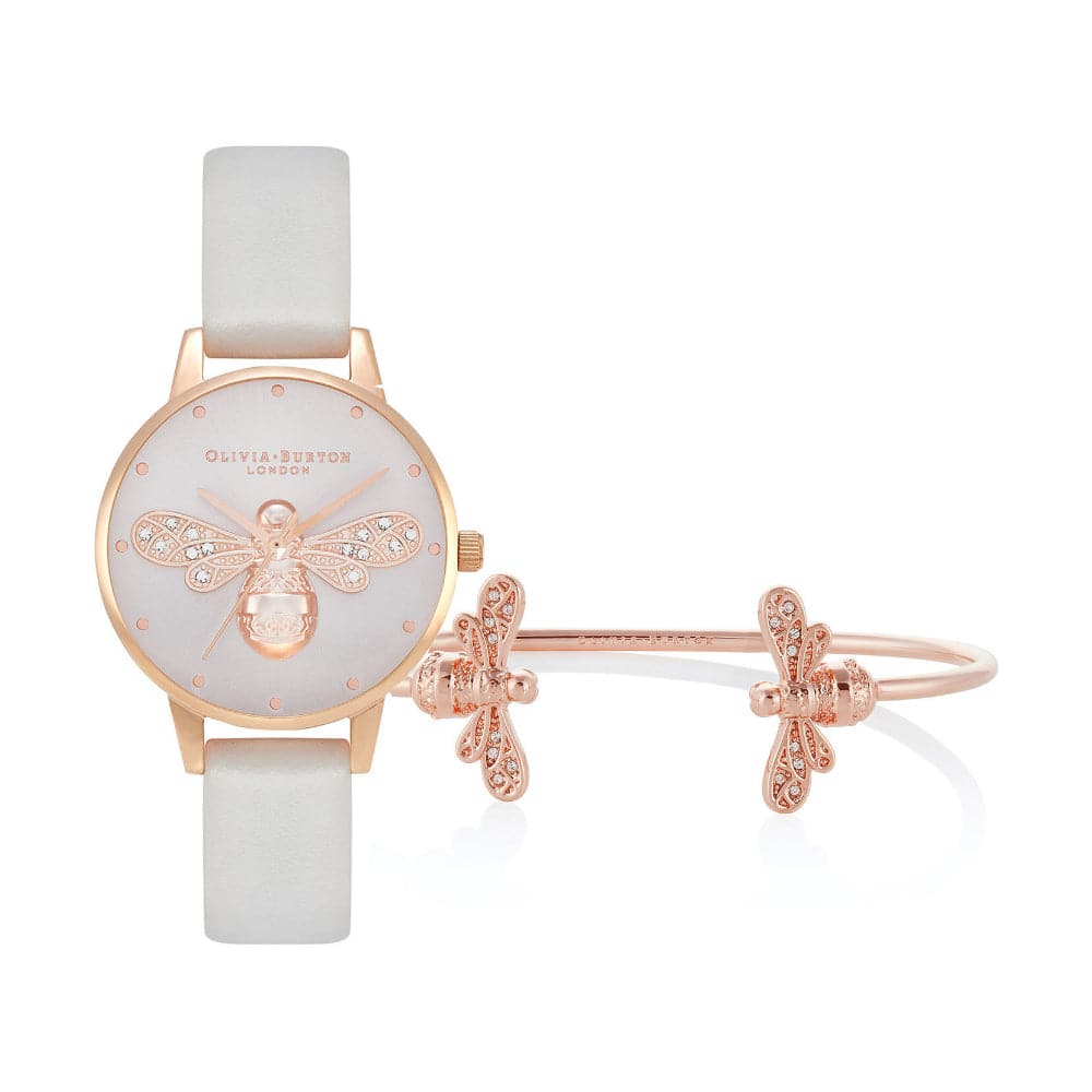 Olivia Burton Sparkle Bee Leather Strap Women Watch OBGSET166