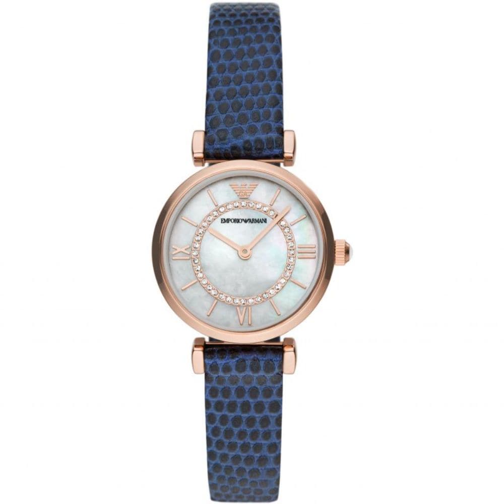 EMPORIO ARMANI AR11468 TWO-HAND BLUE LEATHER WOMEN'S WATCH