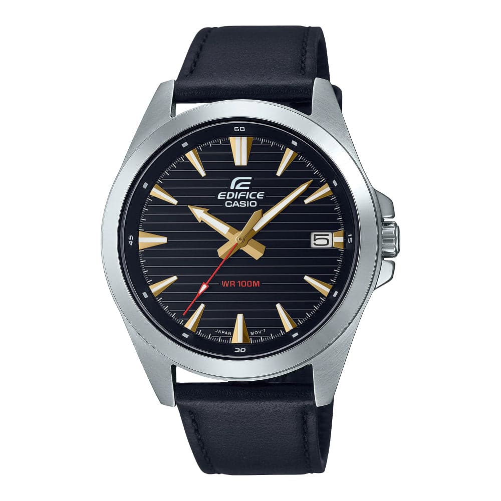 CASIO EDIFICE EFV-140L-1AVUDF BLACK LEATHER MEN WATCH
