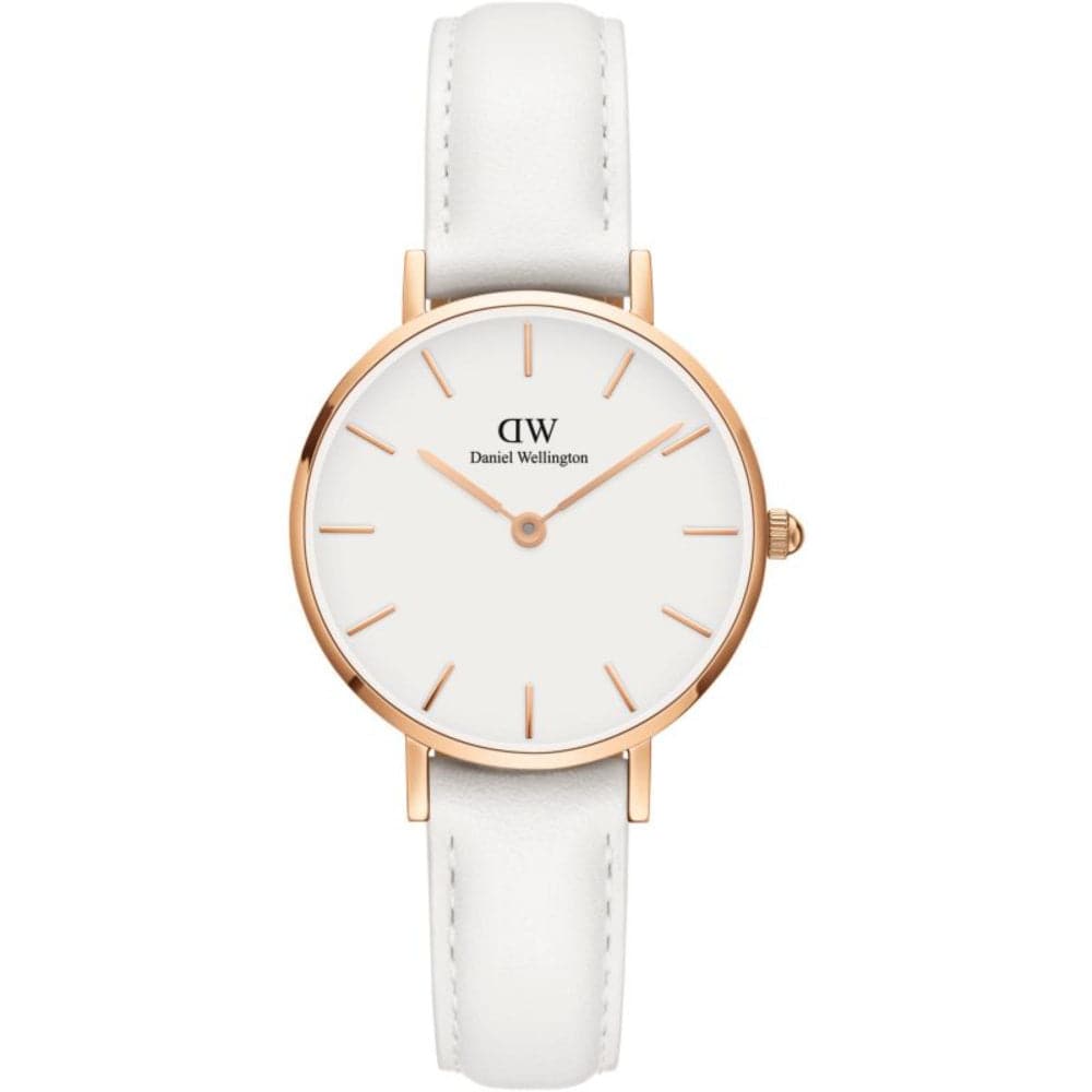 DANIEL WELLINGTON PETITE 28 BONDI ROSE GOLD STAINLESS STEEL DW00100249 WHITE LEATHER STRAP WOMEN'S WATCH