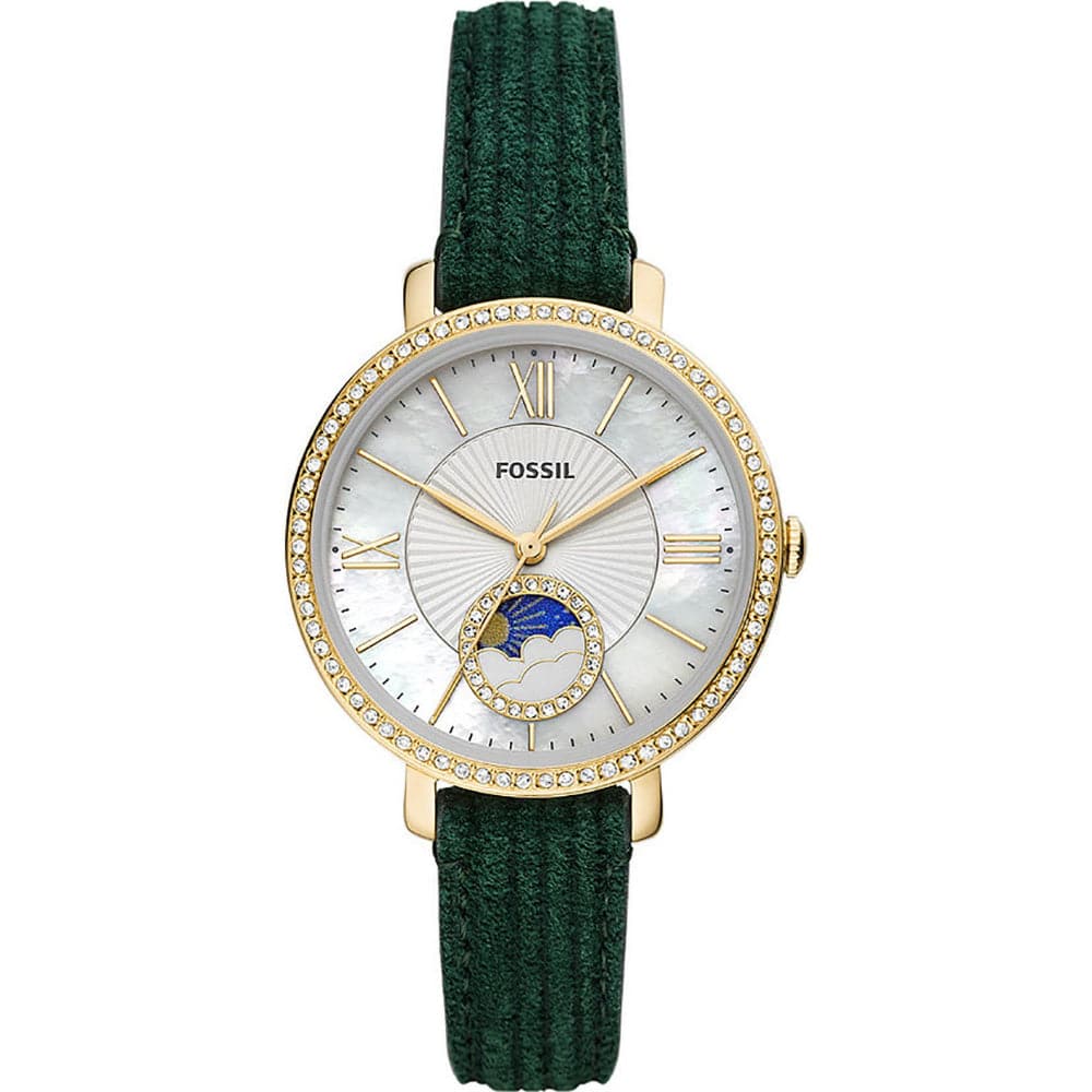 Fossil Jaqueline Silver Dial And Green Leather Strap Women Watch ES5244