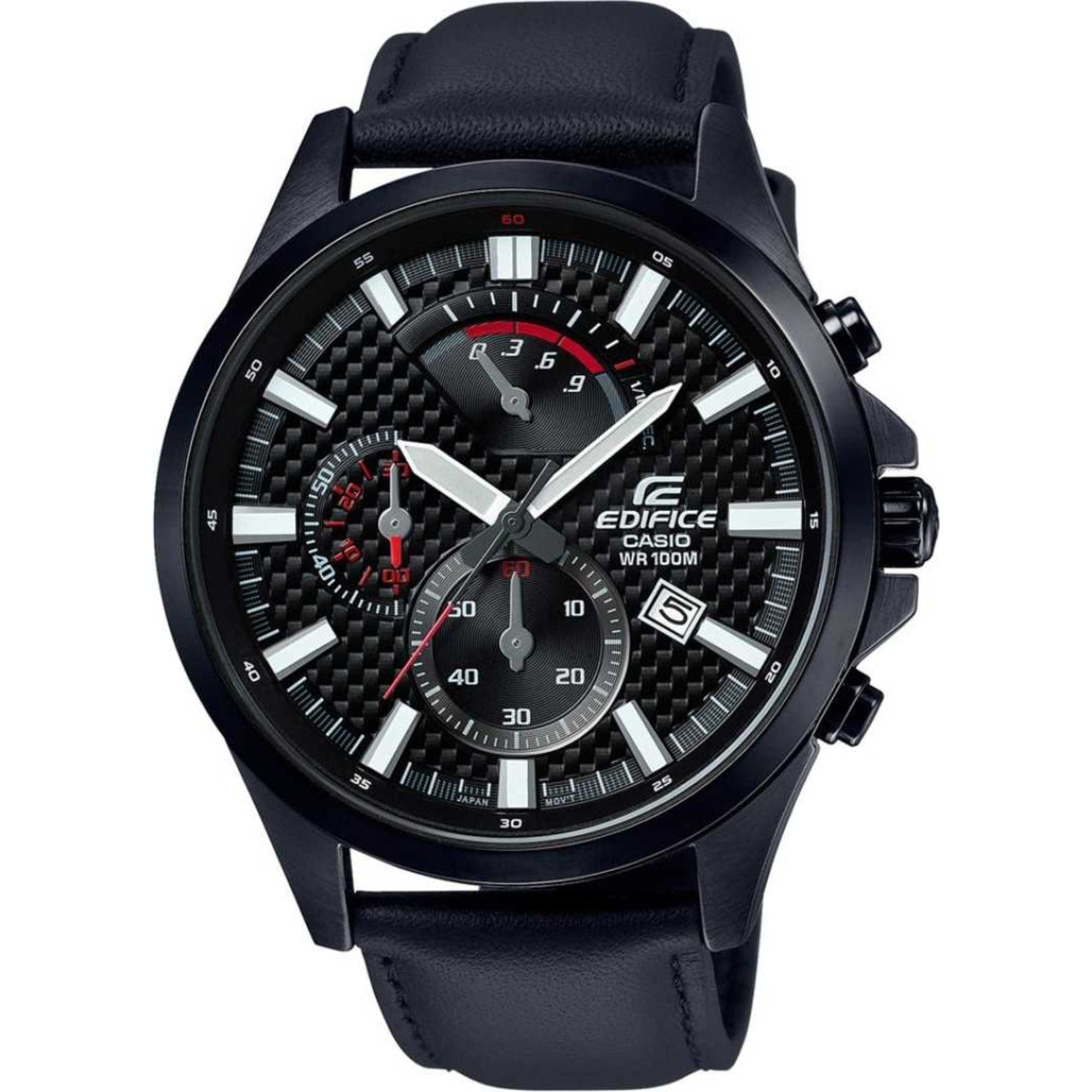 CASIO EDIFICE EFV-100L-1AVUDF BLACK LEATHER MEN'S WATCH