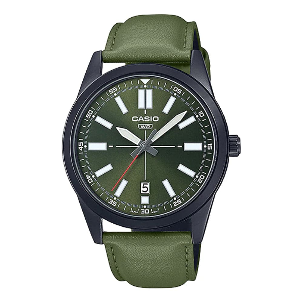 CASIO ANALOG MTP-VD02BL-3EUDF-P GREEN LEATHER MEN WATCH