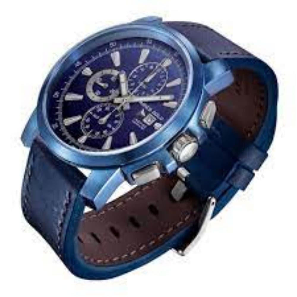 ARIES GOLD INSPIRE CONTENDER BLUE STAINLESS STEEL G 7301A BU-BU BLUE LEATHER STRAP MEN'S WATCH
