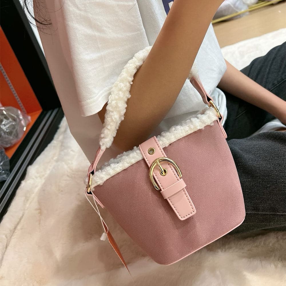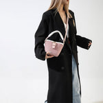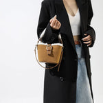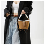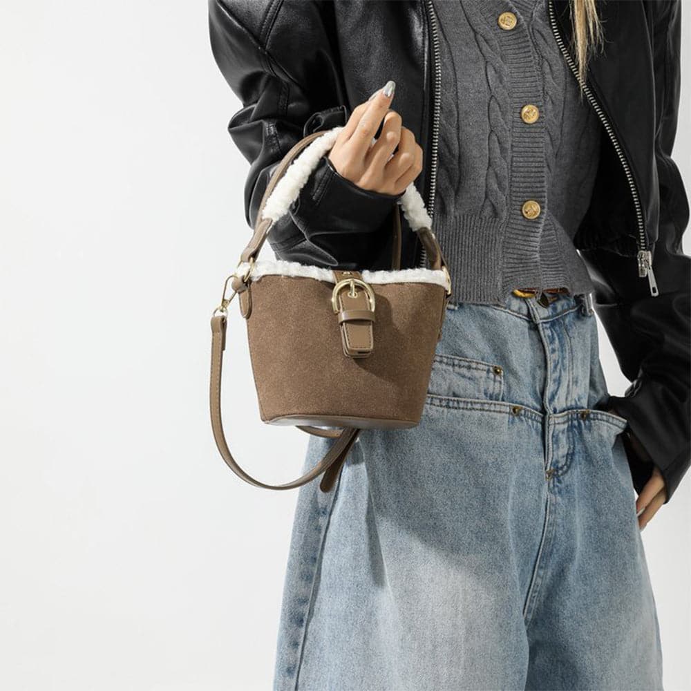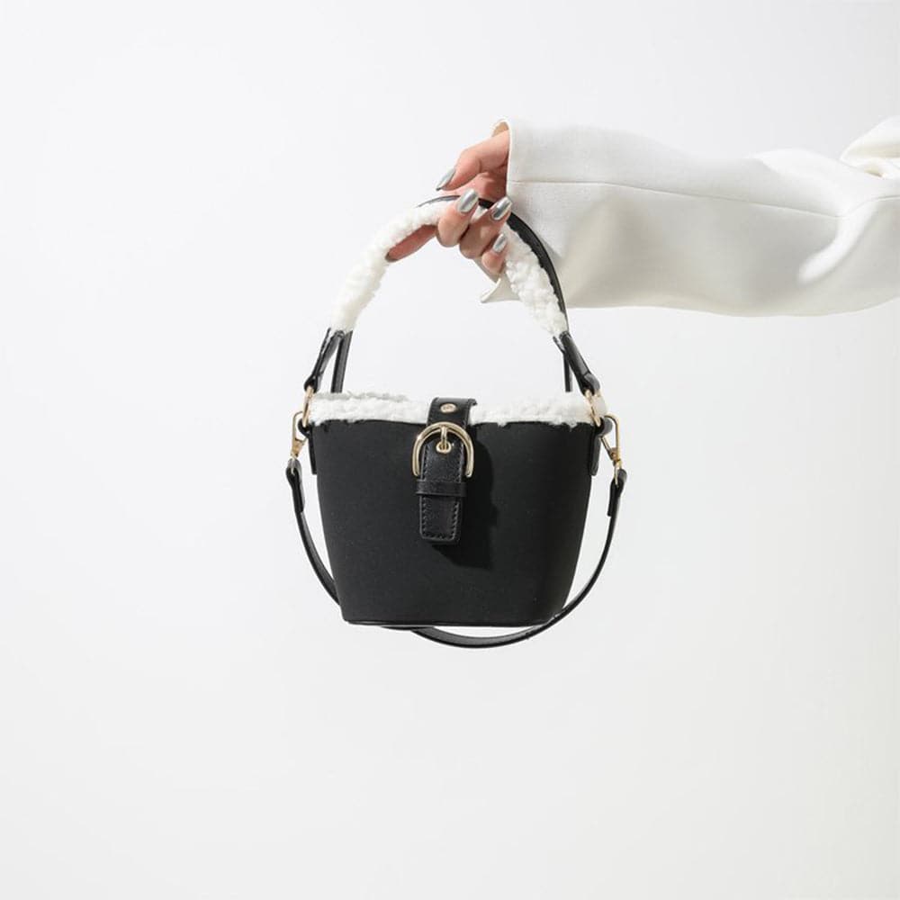 Chic Design: This handbag features a trendy bucket shape with a unique buckle top handle, making it stand out from ordinary bags.
