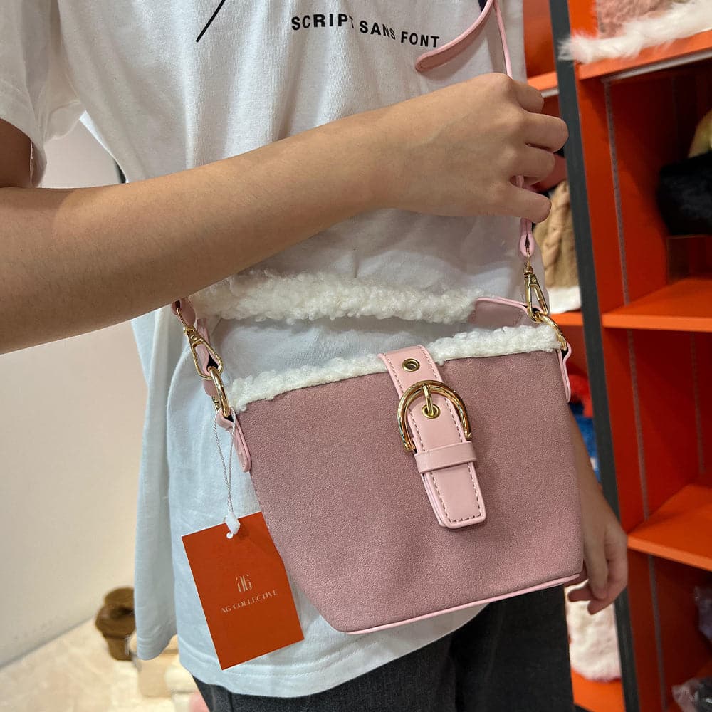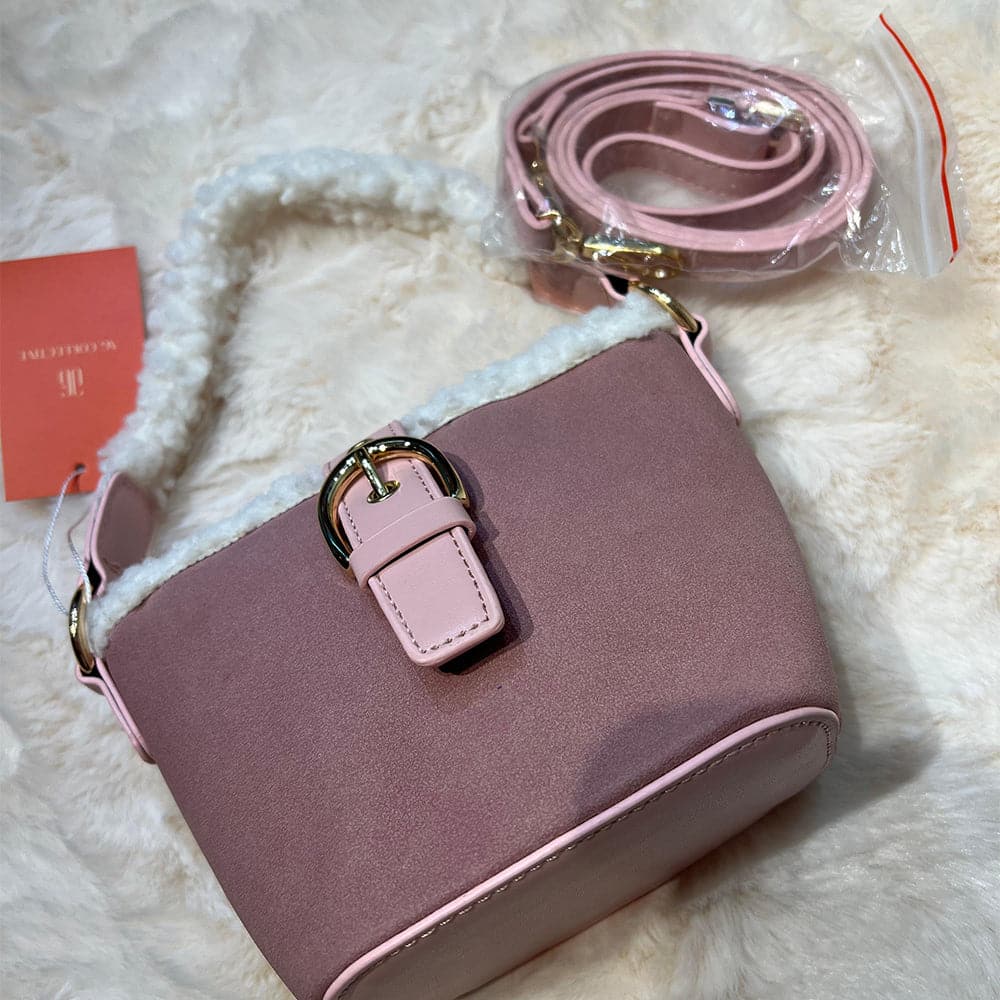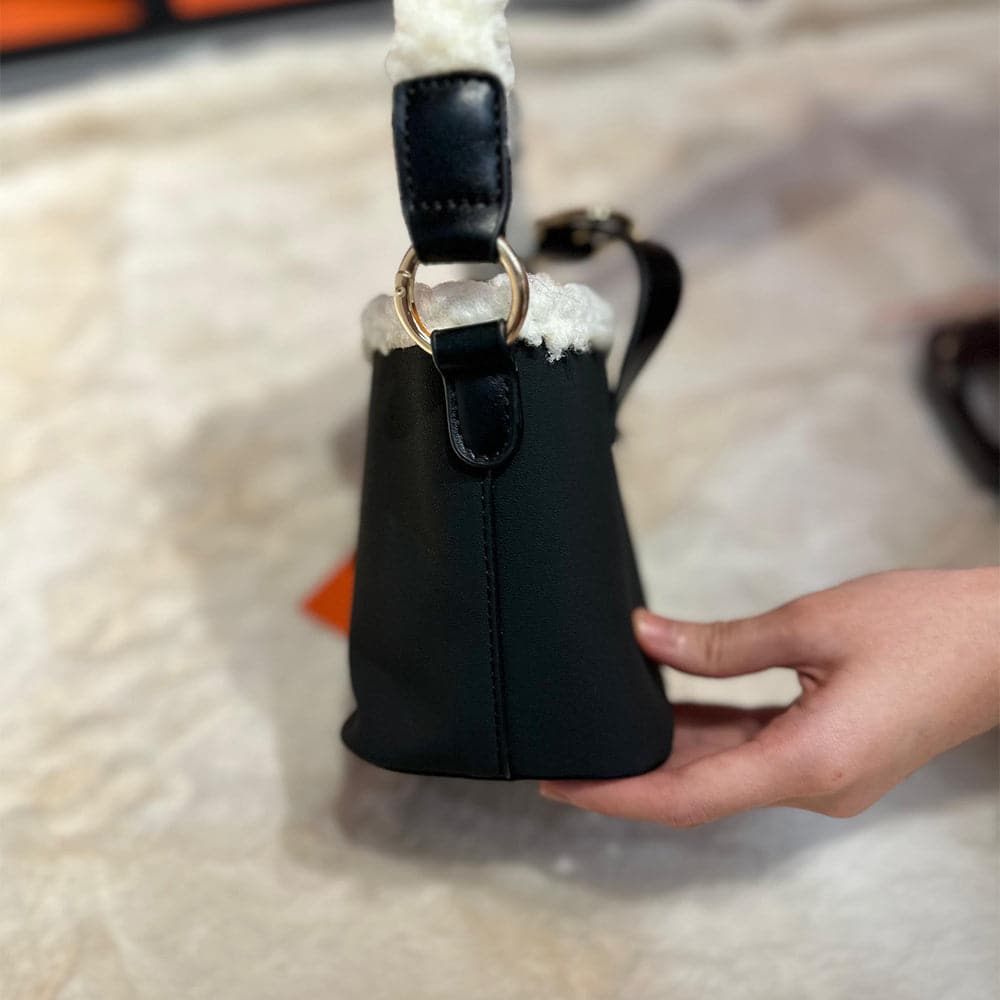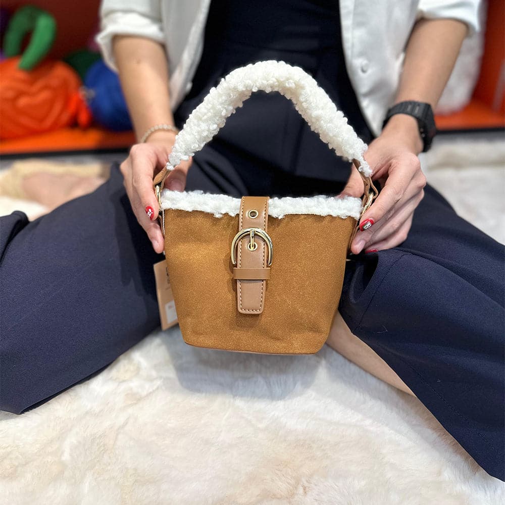 Chic Design: This handbag features a trendy bucket shape with a unique buckle top handle, making it stand out from ordinary bags.