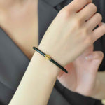 A delicate gold accent adorns the bangle — a petite, refined blossom set with a ruby-toned center stone. This tiny yet meaningful detail represents vitality, auspicious luck, and the flourishing of new opportunities. Its placement on the bangle adds a touch of femininity and luxury while maintaining the minimalist, timeless aesthetic.