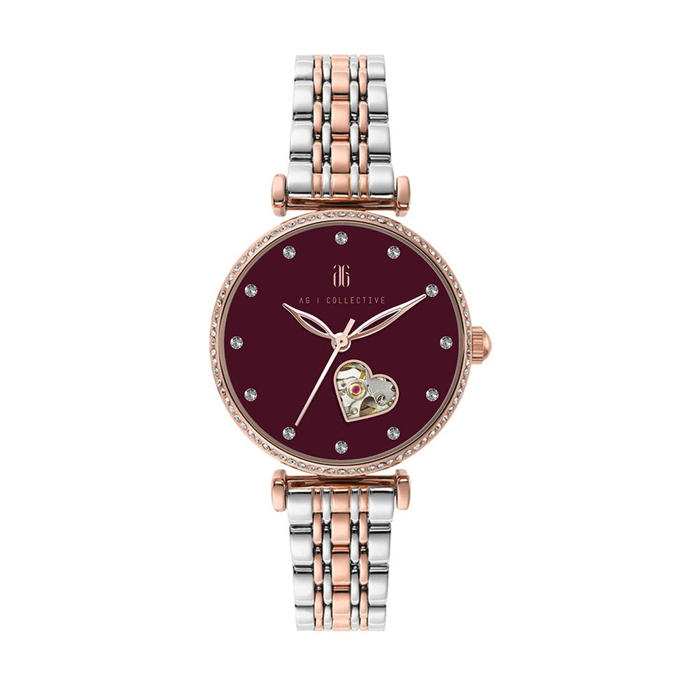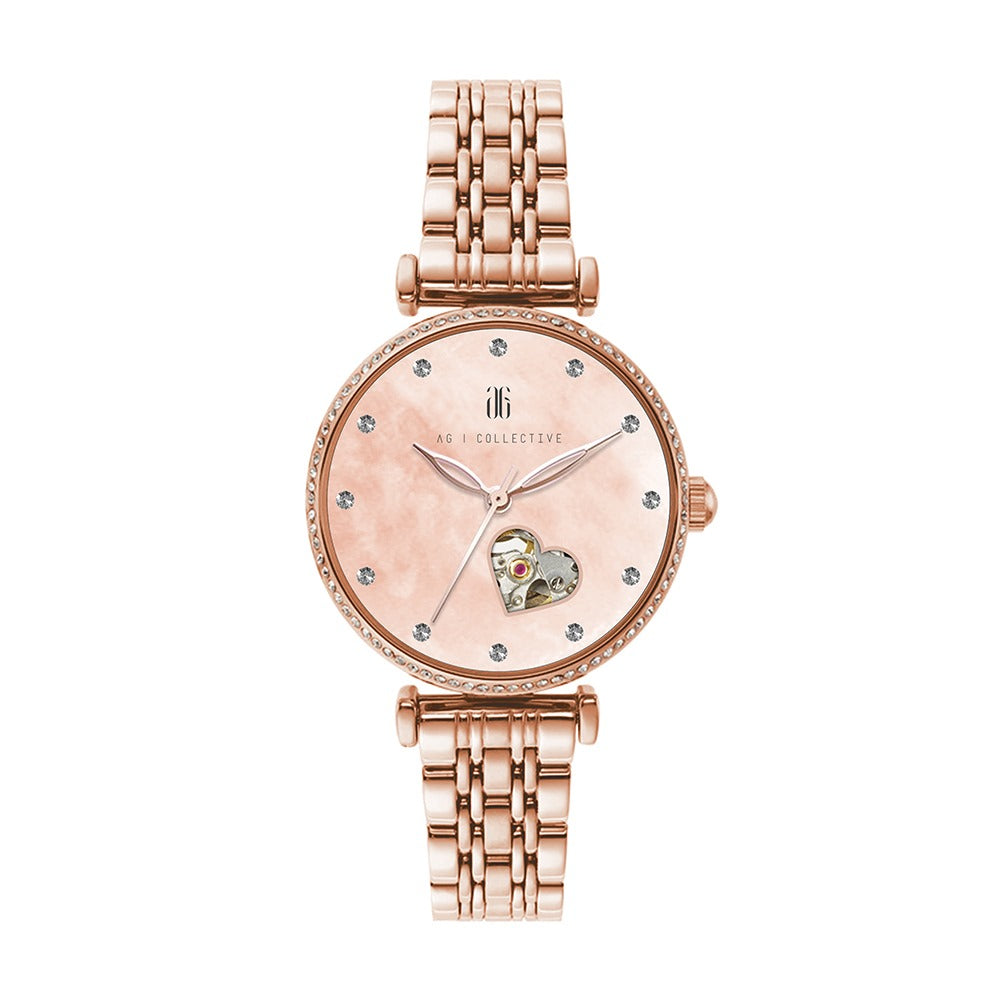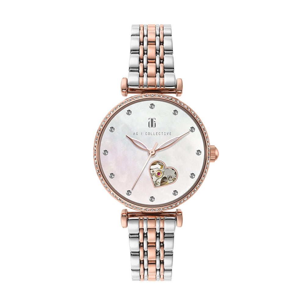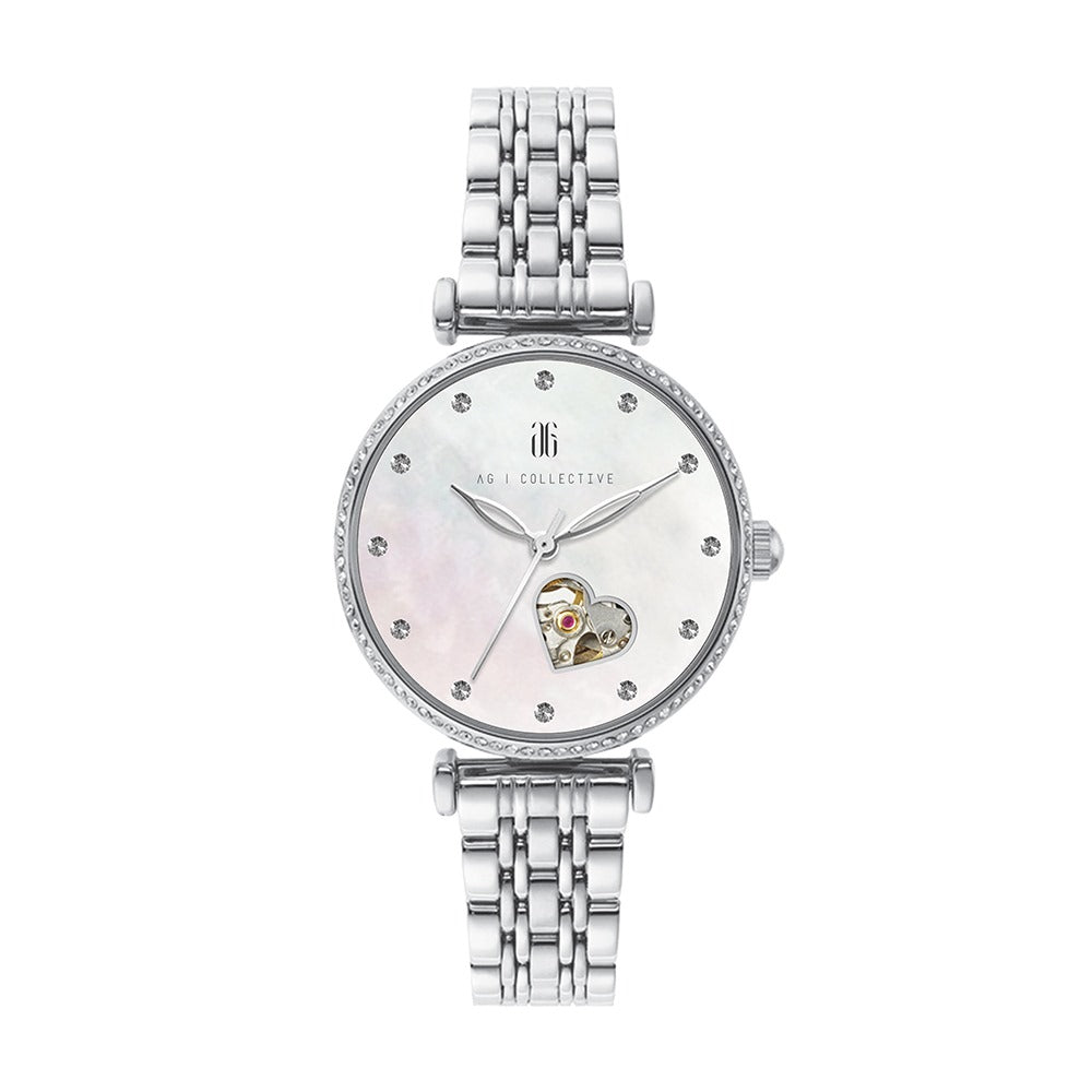 AG Collective L 5043 Series Open Heart With 12 Stones Stainless Steel Strap Women Watch