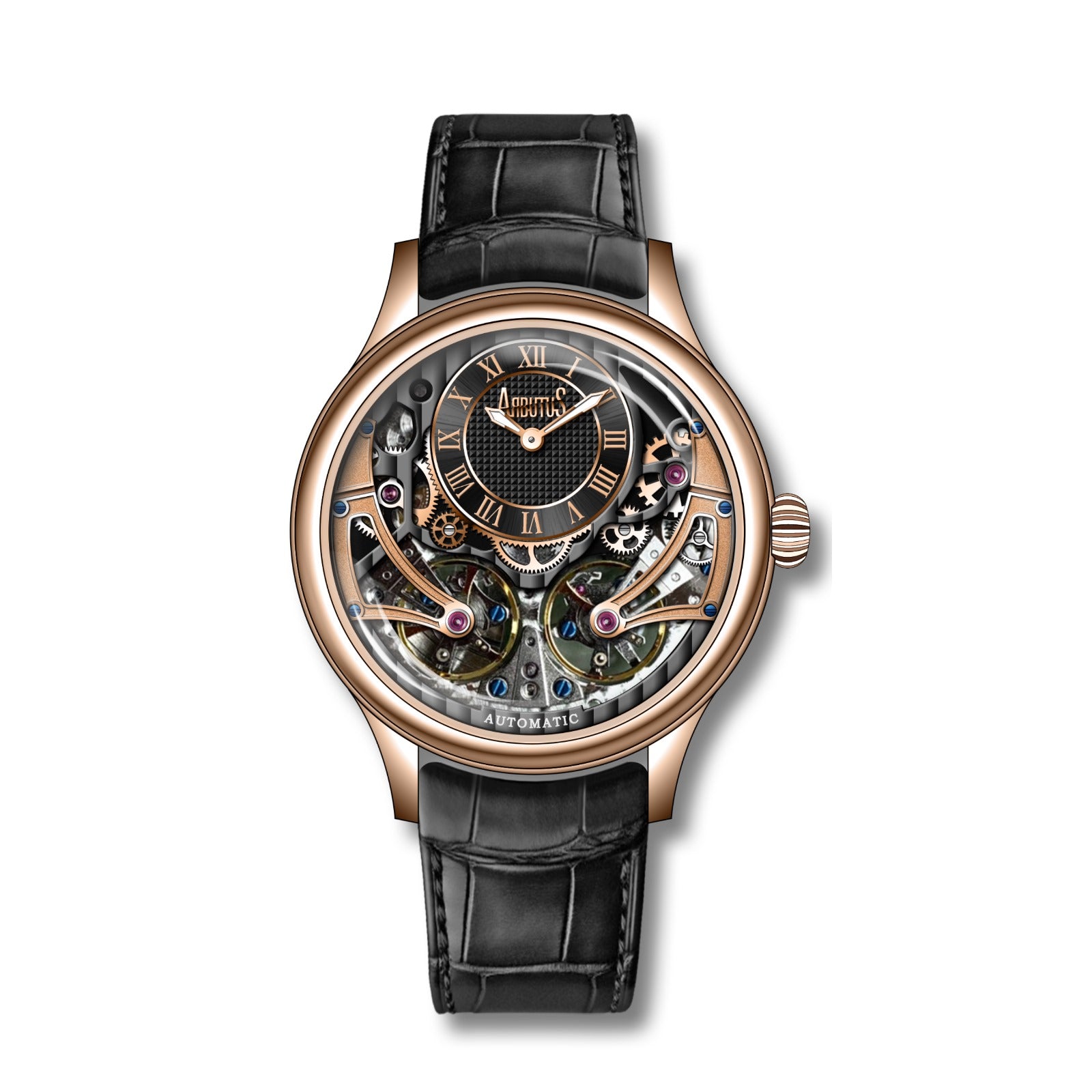 ARBUTUS Black Leather Strap Double Balance Wheel AR2404SWB