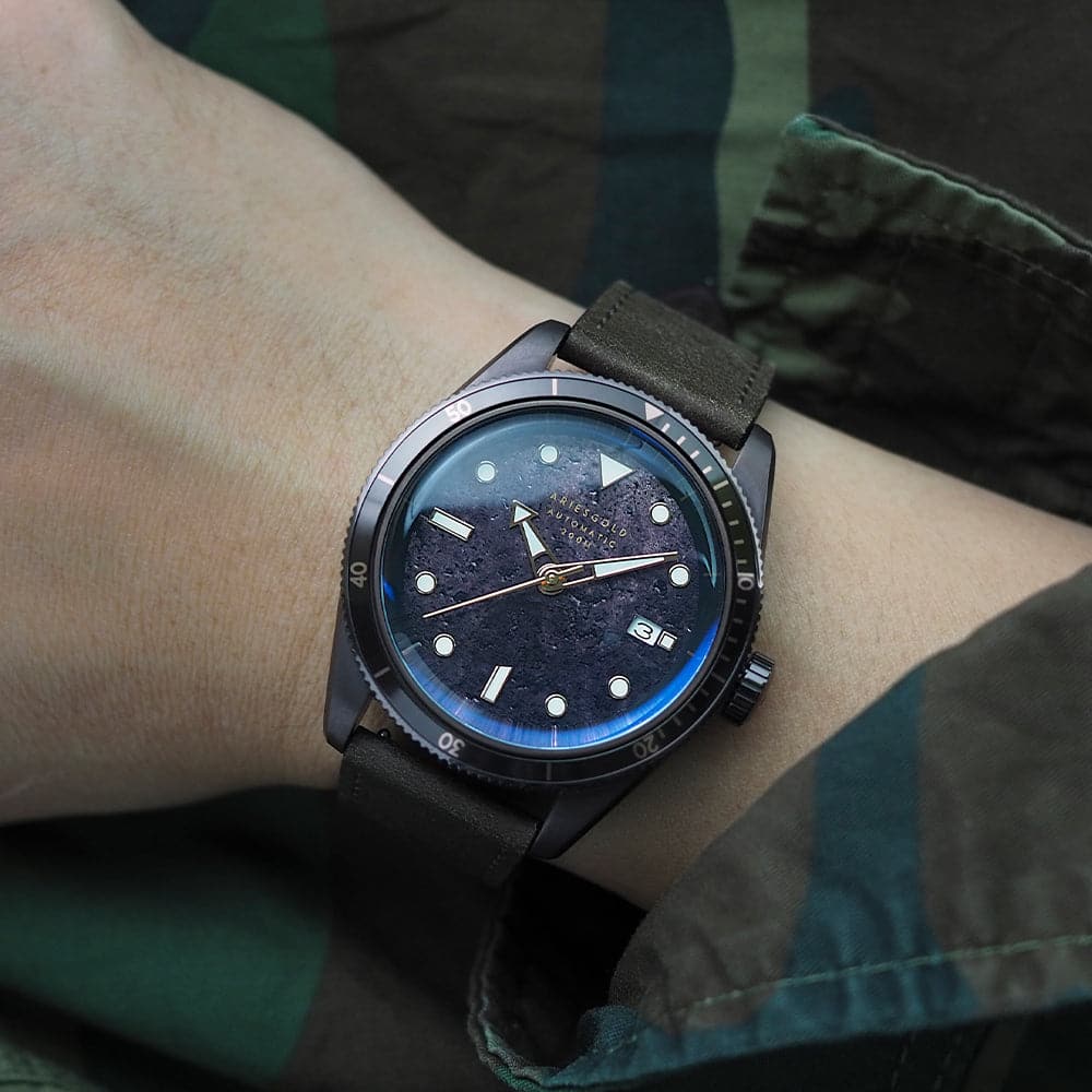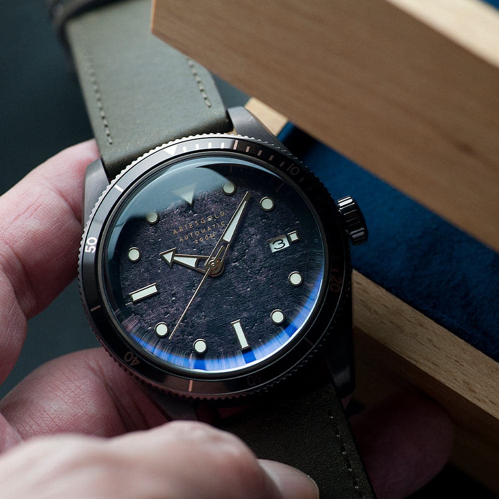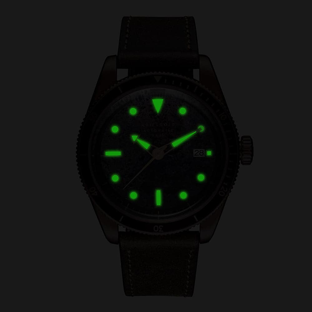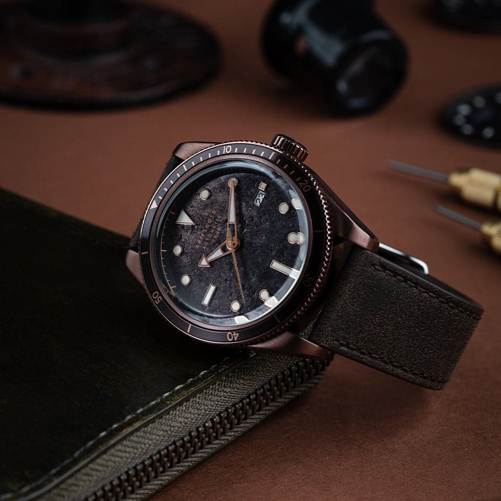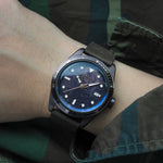 The Black Sea, our first ever dive watch. One that takes the form of a design over half a century old that is still as distinct and timeless today. One that took over six months of painstaking research and development, gruelling tests and quality control standards to produce. And here it is. With a boxed mineral-crystal set atop a brushed 43mm stainless-steel case. The Black Sea is as much a statement of what a modern dive watch is, and what we believe it should be. A unique semi-skeletonized hand set and applied indexes, generously coated with Super Luminova for uncompromised visibility even in the darkest of depths, ensures that there is no mistaking the Black Sea for what it is on your wrist. Powered by a workhorse Seiko time-corp NH35a, performance and reliability are guaranteed even in the most trialling of conditions. With 3 different dial textures and strap options ranging from either leather or stainless-steel to choose from. Whether it is under a cuff or the crushing depths of the ocean there is no situation where the Black Sea will not find itself at home.