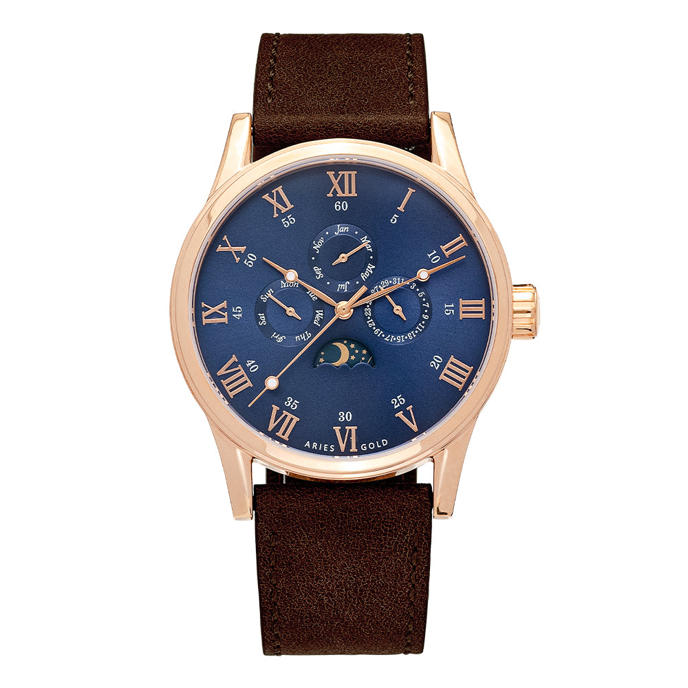 Aries Gold Multifunction Brown Men's Watch - Moon Phase | G 7019 RG-BU