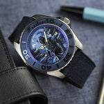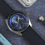 The Mirage watch, an enchanting emblem of the Ninja Series, blends horology and intrigue like moonlight on steel. Light and shadow dance across the dial, a captivating nod to the ninja's elusive nature. A whisper-quiet movement keeps time like a well-oiled blade, hidden beneath a sapphire crystal veil. Sculpted hands, textured strap, and meticulous craftsmanship whisper of unwavering ninja spirit.