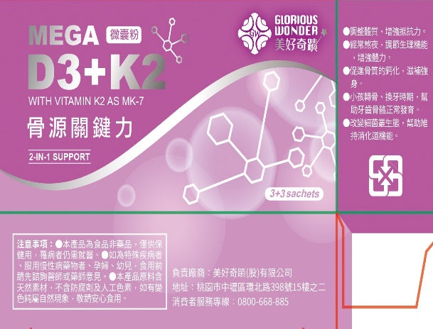 📦 內含 3 包銀色 D3 + 3 包白色 K2 – 每月僅需服用 1 次