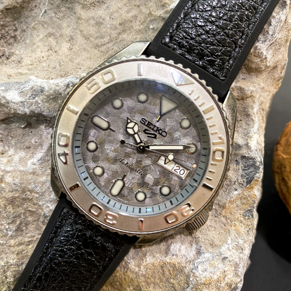 Each modified timepiece is meticulously crafted by our in-house designers and highly experienced watch smiths. Made to order and tested for water resistance and pressure, our mods ensure uncompromised quality. Available in very limited production, each piece is a rare example of our exclusive craftsmanship and can be personalised to be truly one of a kind. Please allow 7 - 14 working days for us to create, test, and deliver your unique mod.