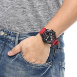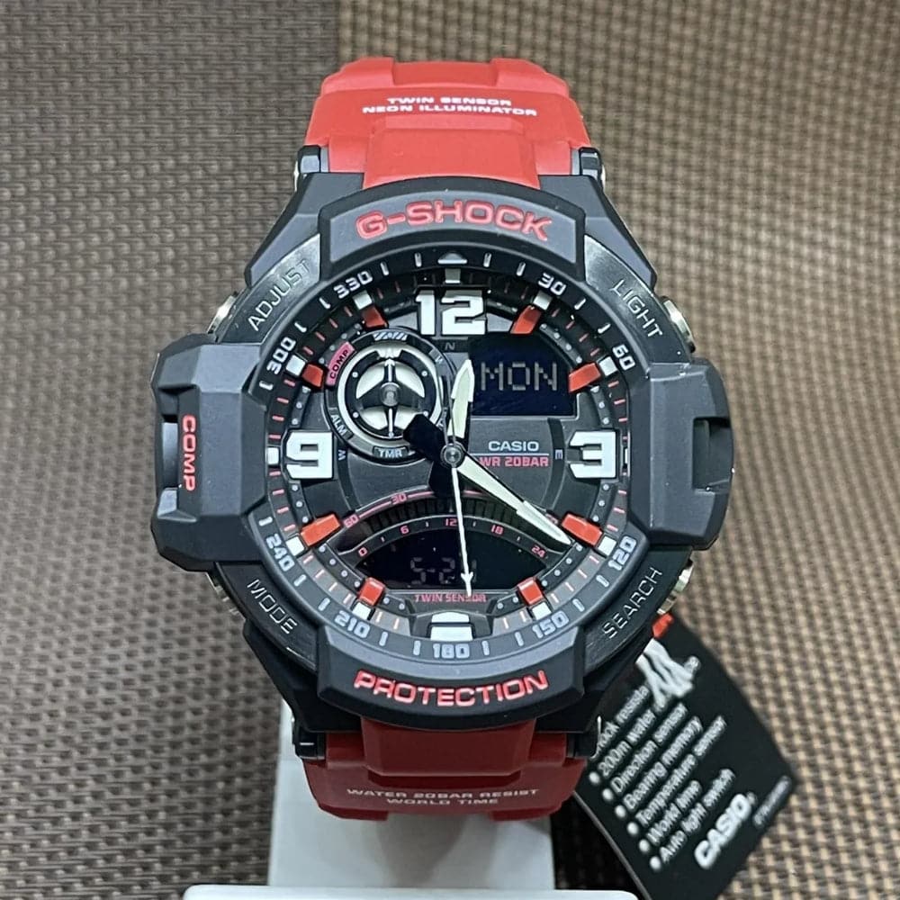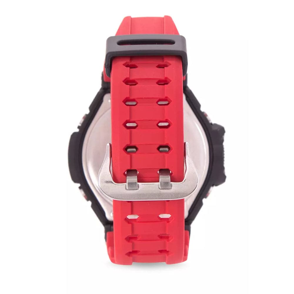 These new additions to the GRAVITYMASTER lineup are equipped with digital compass capabilities, creating a watch that is perfectly matched to the needs of the modern aviator, both in terms of function and appearance. Pressing the 9 o'clock button in any mode immediately goes to the Digital Compass Mode, while the button at 8 o'clock returns to the mode you were in before the Digital Compass Mode. Continual direction readings can be taken for 20 seconds, during which the secondhand points to north, a literal direction indicator is displayed in the upper display, and a direction angle value is displayed in the lower display.