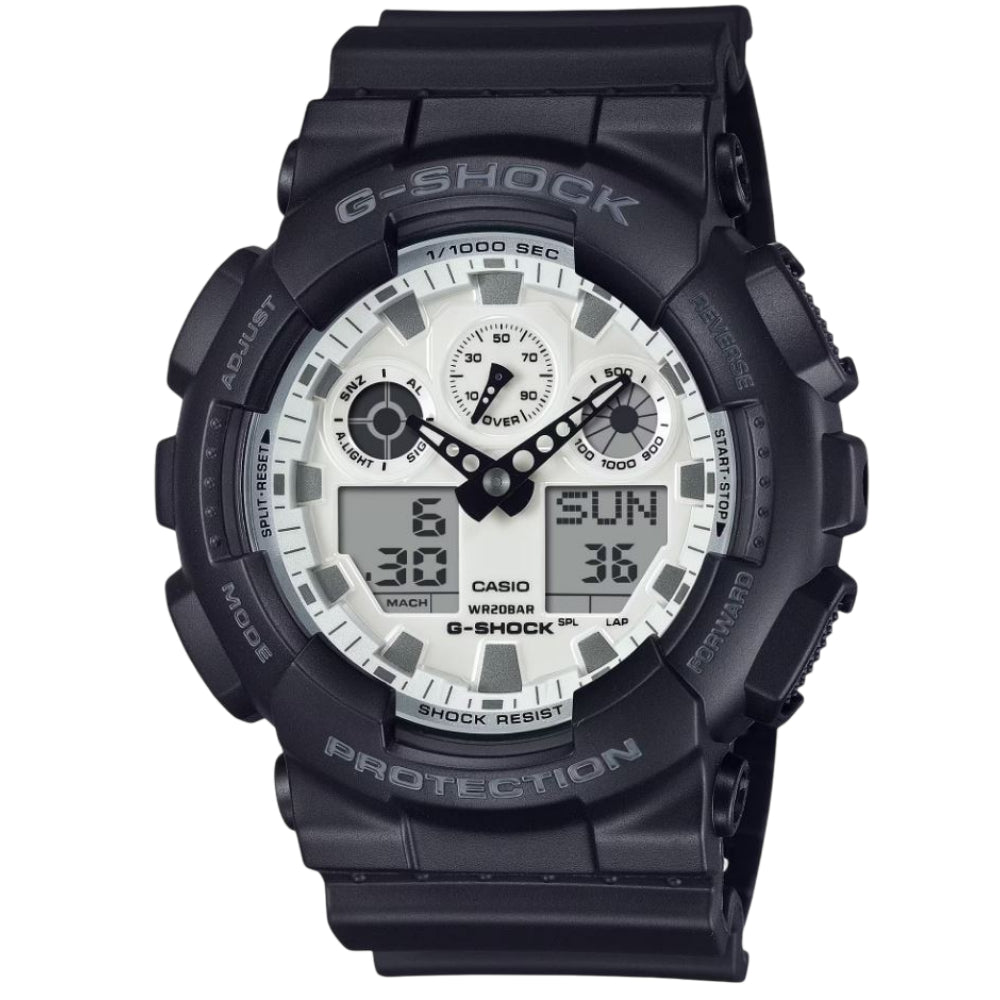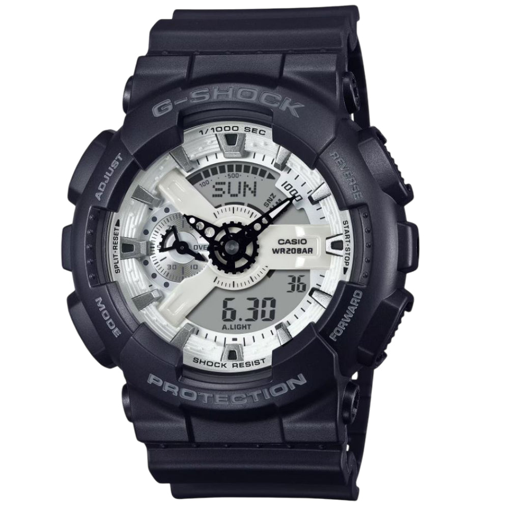 Go bold and confident with a strikingly straightforward G-SHOCK in high-contrast black and white.