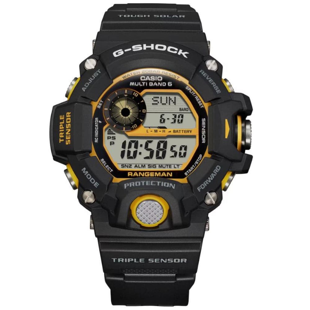 The GW-9400 RANGEMAN is equipped with Triple Sensor to deliver altitude, direction, temperature and barometric pressure readings directly to your wrist. The cylindrical button guard structure ensures smooth and accurate operation of the sensor button. Press the sensor button and the most recently used sensor mode is instantly displayed. Three different types of beeps indicate different measurement modes — handy for no-look operation that frees your focus for rugged adventure.