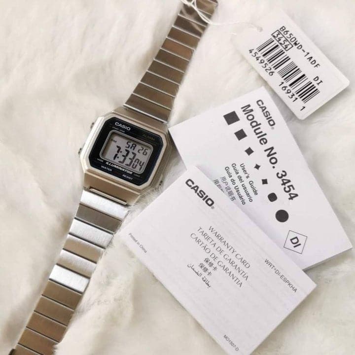 | Function | Large time digits, LED backlight, 1/100-second stopwatch, Daily alarm, Stainless steel band |